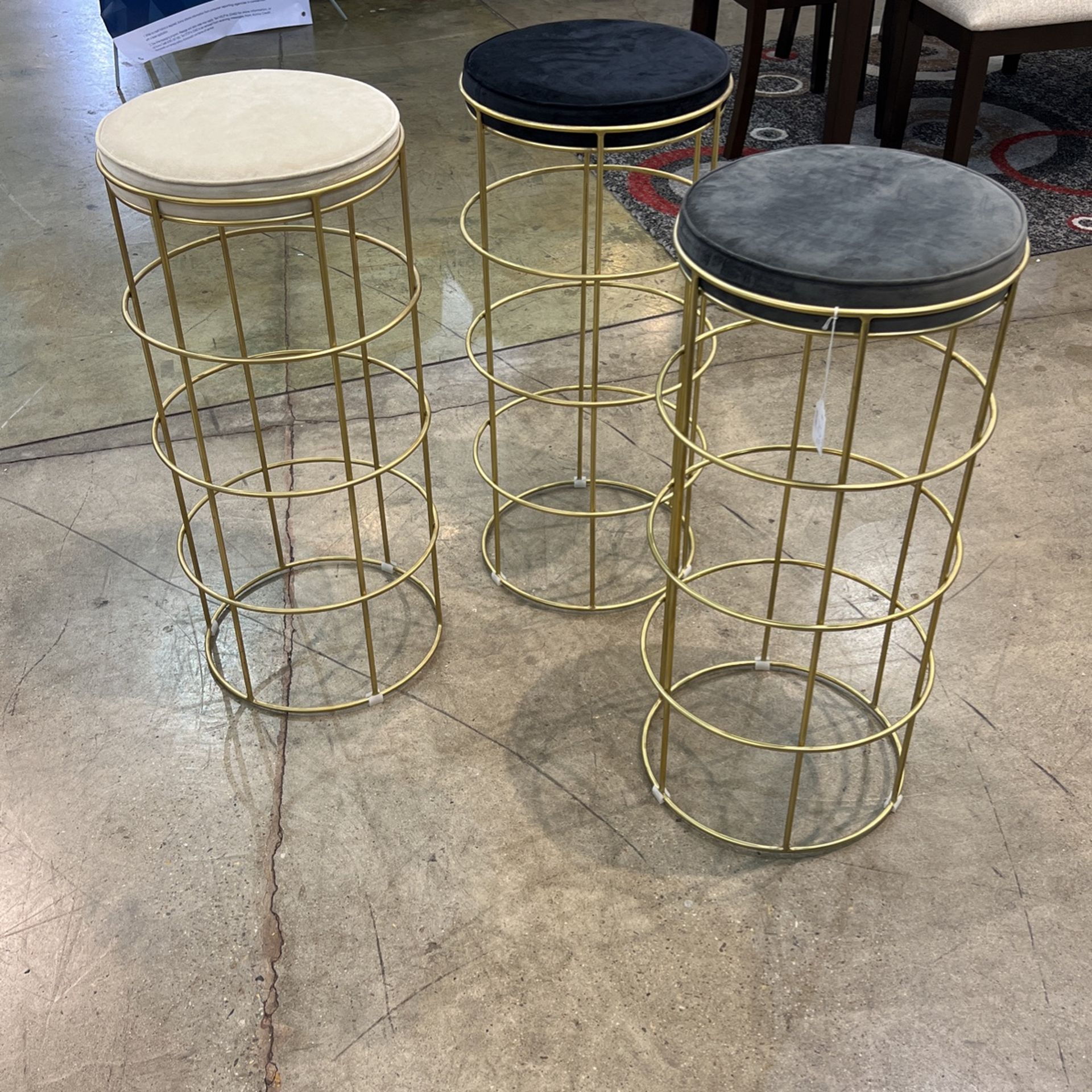 - BRAND NEW - GOLD METAL ROUND BARSTOOL - VELVET CUSHION - AVAILABLE IN BLACK, BEIGE & GREY - SELLING FOR $20 LESS THAN IN STORE - DELIVERY AVAILABLE - PICK UP AVAILABLE - NO CREDIT CHECK FINANCING AVAILABLE - TEXT 20727 TO 22462 - TEXT 16924 TO 37981