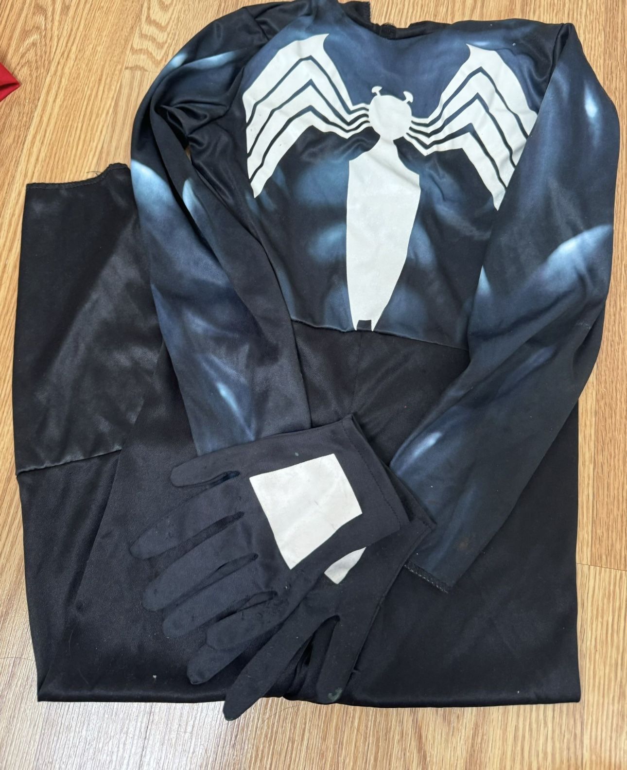 Only worn for few hours, in excellent condition! Black Suit Spiderman. Comes with mask and gloves.Should fit 5/6 year old depending on size. length 37 chest 12 waist 10.5 inches
