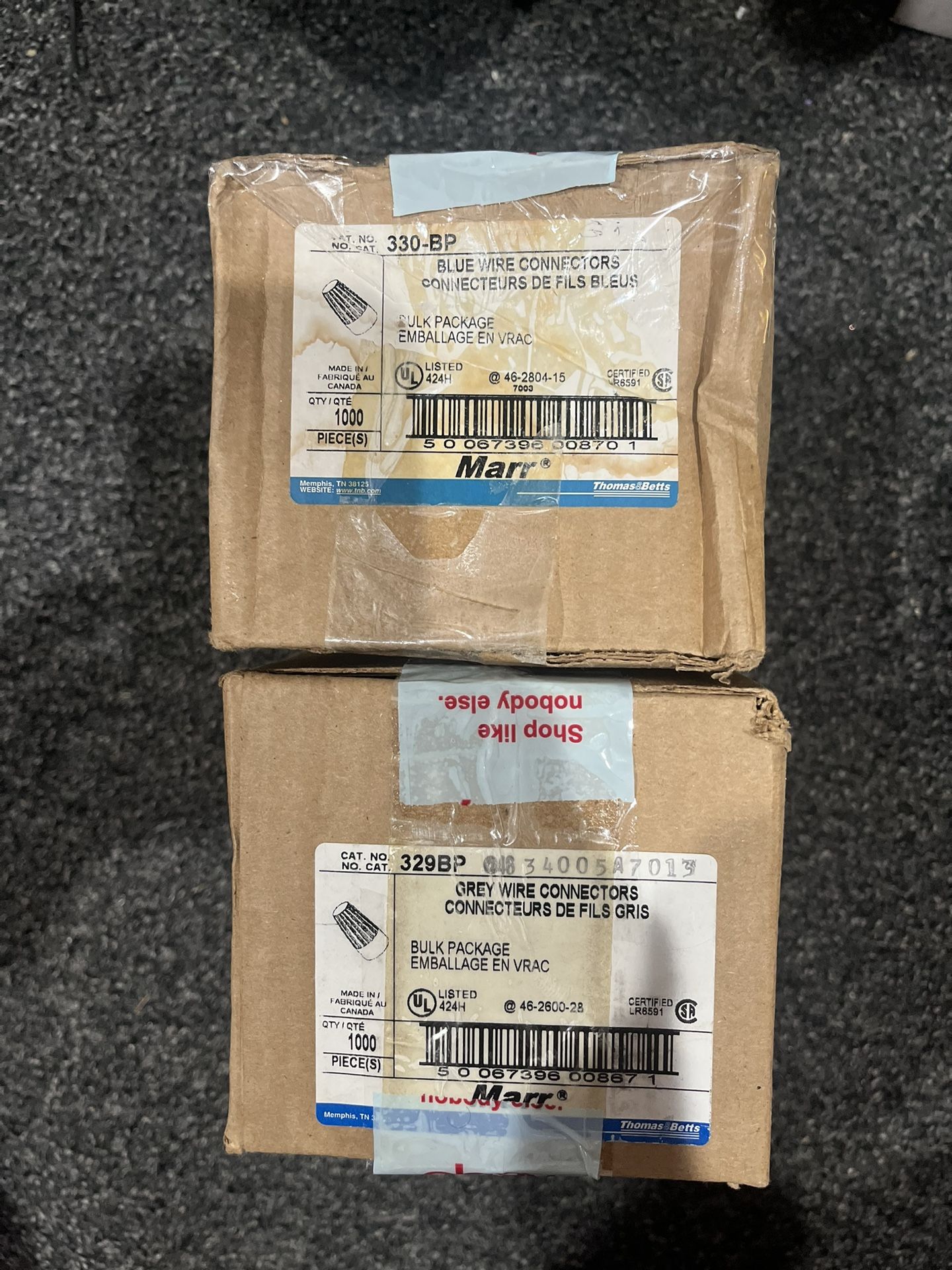 ELECTRIC • WIRE CONNECTORS - BEST QUALITY •THOMAS & BETTS - selling 2000 pcs - 2 sizes • 2 cases 1000 pcs each size - LOWEST PRICE ON INTERNET • BIG SAVINGS • avoid fires use the best Thomas & Betts don’t buy the imports they’re faulty