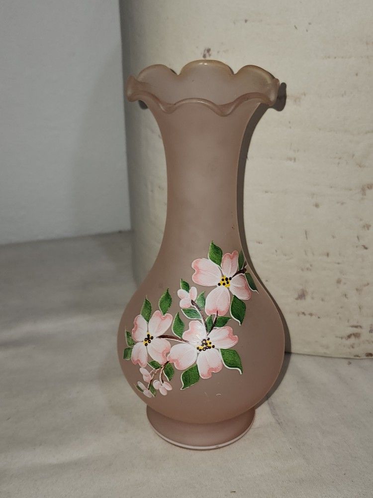 Fenton Custard Glass Bud Vase Hand Painted Small 6" Flower Floral Pink