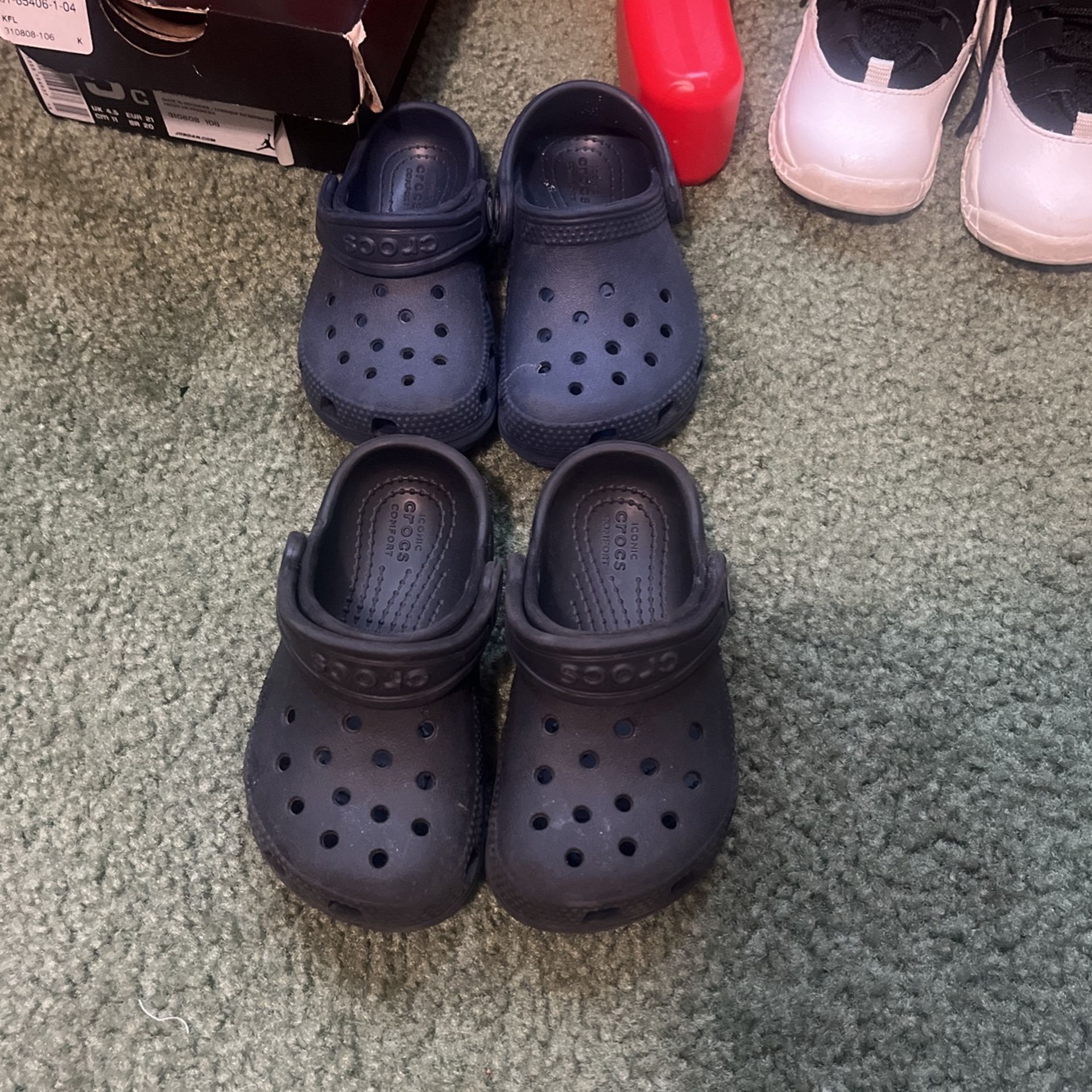 Crocs size 6&7 blue & black. Also have other shoes for sale. Kids Jordan’s Nike, adidas,vans etc. great deals for the kids. Please text if u have any questions. Sizes range from5c,6c,7c . Prices range between 20/40 bucks. Text for more info.