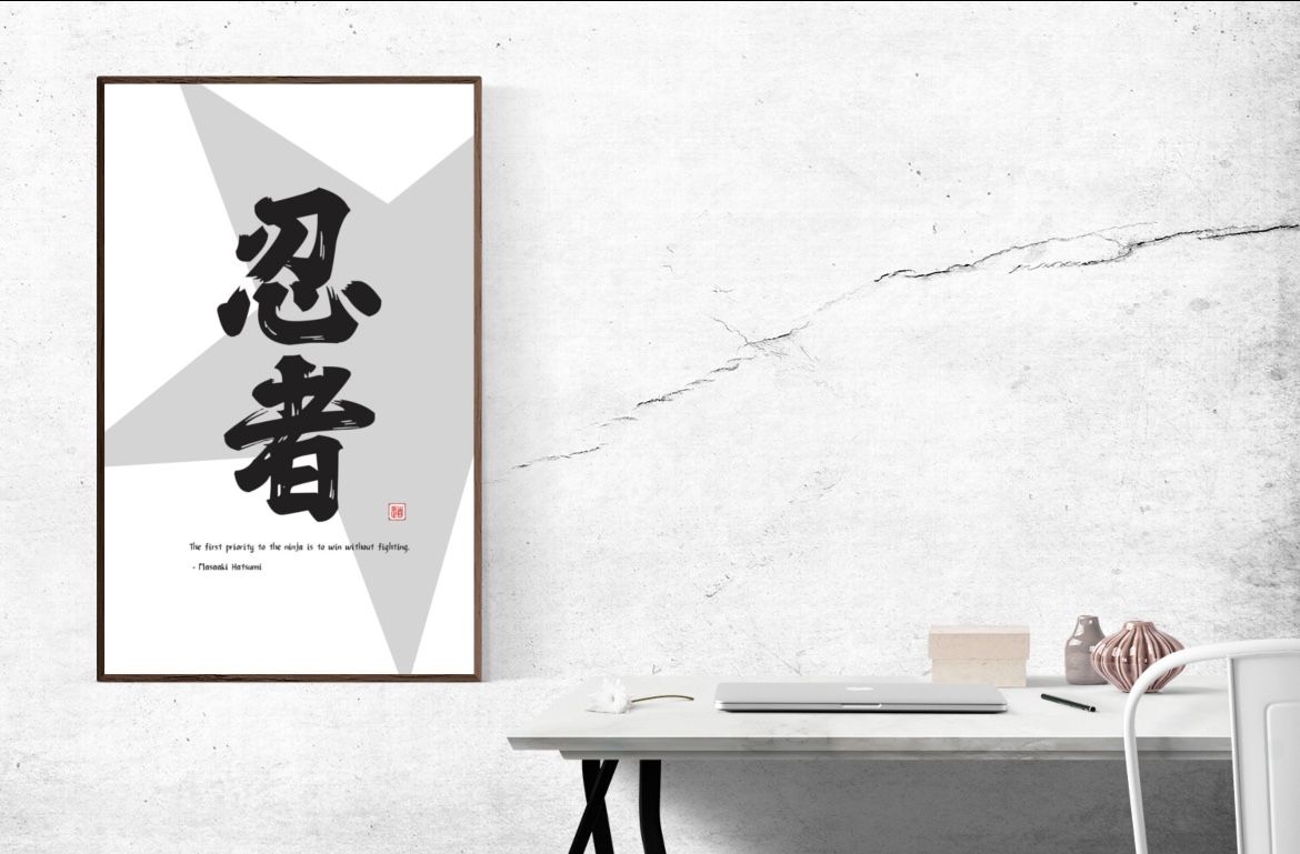 Ninja, Japanese, Chinese, Kanji, Characters, Calligraphy, Quote, Modern, Contemporary, Digital Image, Writing, Inspiration, Poster, Canvas