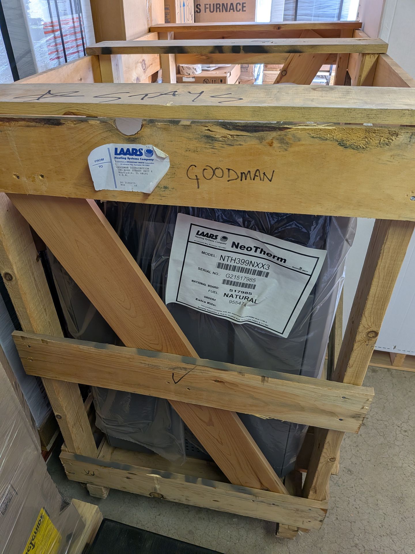 New LAARS NeoTherm NTH399NXX3 condensing boiler, rated at 399,000 BTU. No Pump configuration, giving you full flexibility to design and install your own primary/secondary or variable-speed pumping setup. Built for commercial and large residential jobs, this unit delivers high-efficiency condensing performance with a durable stainless steel heat exchanger—ideal for meeting current energy codes and reducing operating costs. Comes in Wooden Crate Brand New Ready for Install
