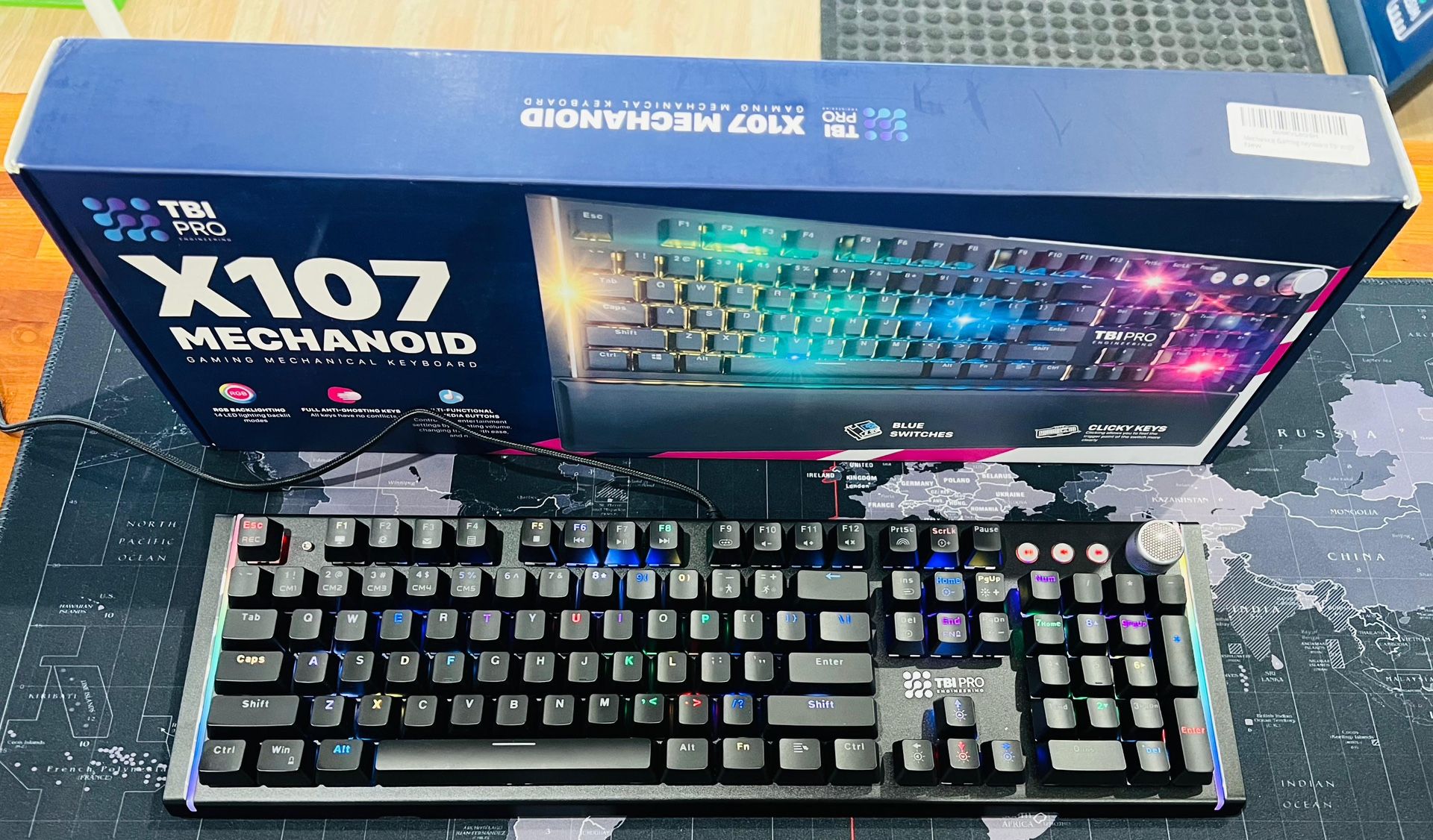 Hi I am selling TBI PRO Mechanical Gaming Keyboard. Model num: X107 It’s Brand New *KEY FEATURES:* -Switches: Blue Mechanical Switches (tactile, clicky). -Layout: Full-size (104 keys) with number pad. -Lighting: Customizable RGB (65 million colors), multiple modes (breathing, wave, single color, manual). -Build: Aluminum top case, durable materials. -Multimedia: Separate buttons for media control (play/pause, skip) and a volume knob. -Durability: Rated for over 50 million keystrokes. -Connectivity: Wired USB. -Design: Full-size, wired, suitable for gaming and typing. *IDEAL FOR:* -Gamers seeking responsive keys and immersive lighting. -Users who enjoy tactile feedback and audible clicks. -Typists needing durability and dedicated media controls. If you’re interested contact me. PLEASE MESSAGE US BEFORE COMING TO ENSURE AVAILABILITY ThankYou