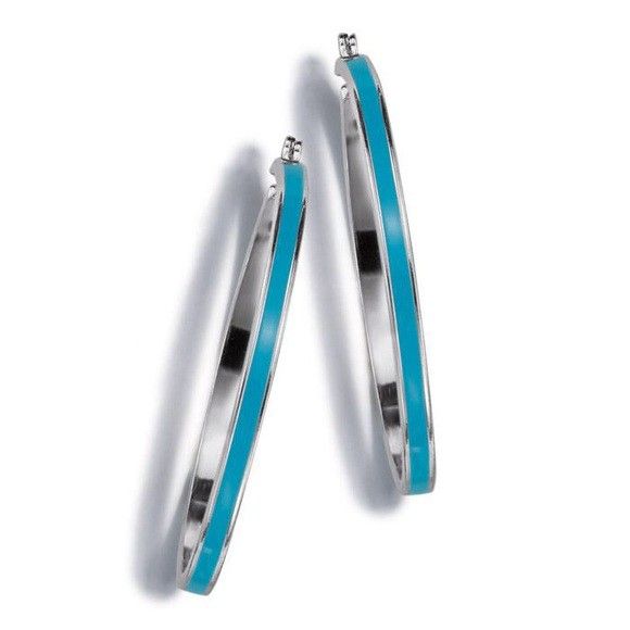 Fragrant Garden Hoop Earrings. Round silvertone hoop earrings with a turquoise rim. Earrings: pierced 1 3/4" in diameter with click in clutch. New in box Avon Jewelry Earrings