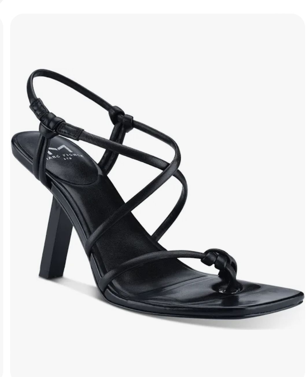 Marc Fisher Strappy Padded Gadella Women's Square Toe Slip On Leather Heeled Thong Sandals Color : BLACK Size : 7 Worn once ! They are in really good condition