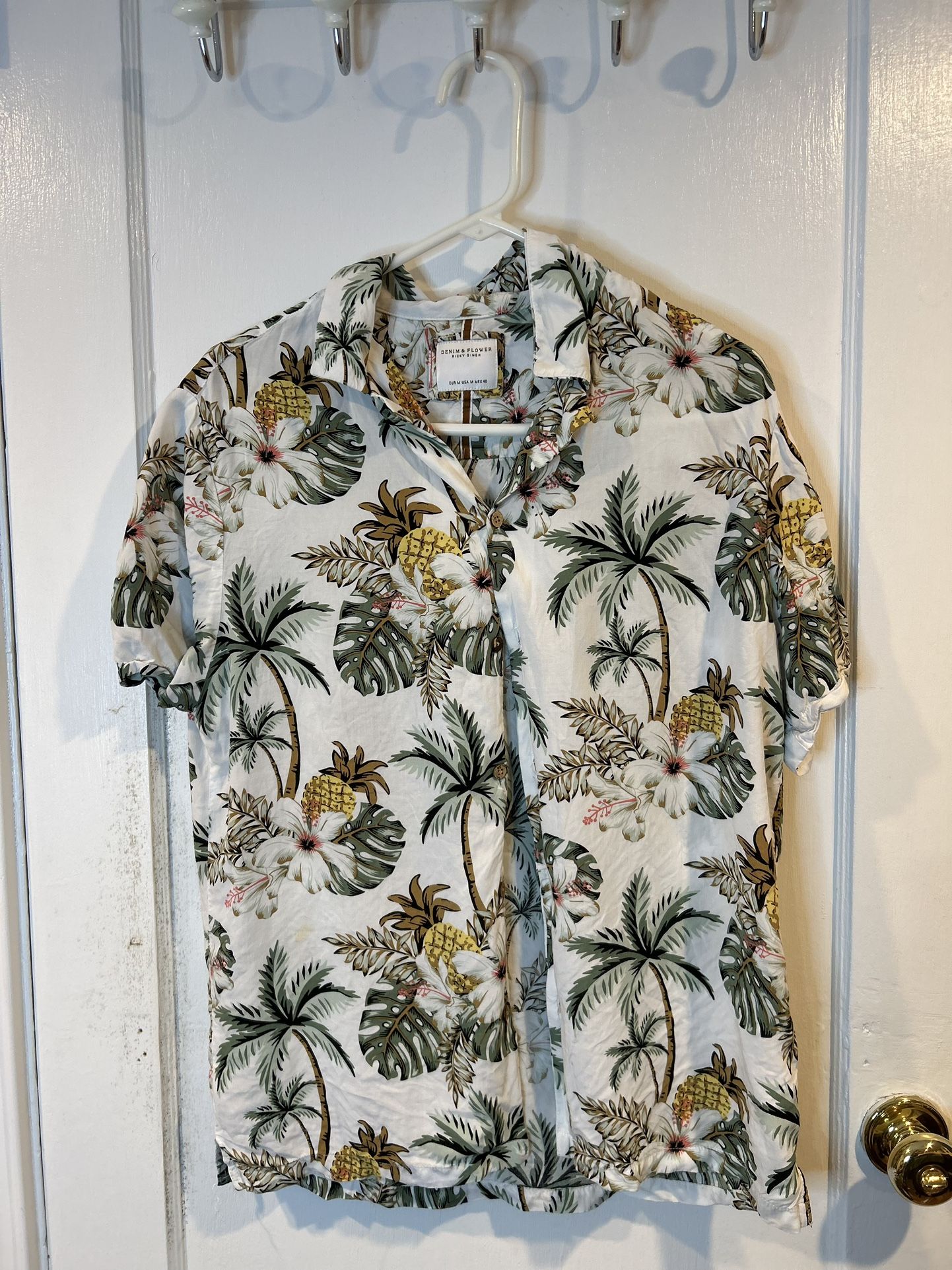 Hawaiian Shirt – Ricky Singh – Men’s M – Denim & Flower – Summer Ready – Hawthorne NJ