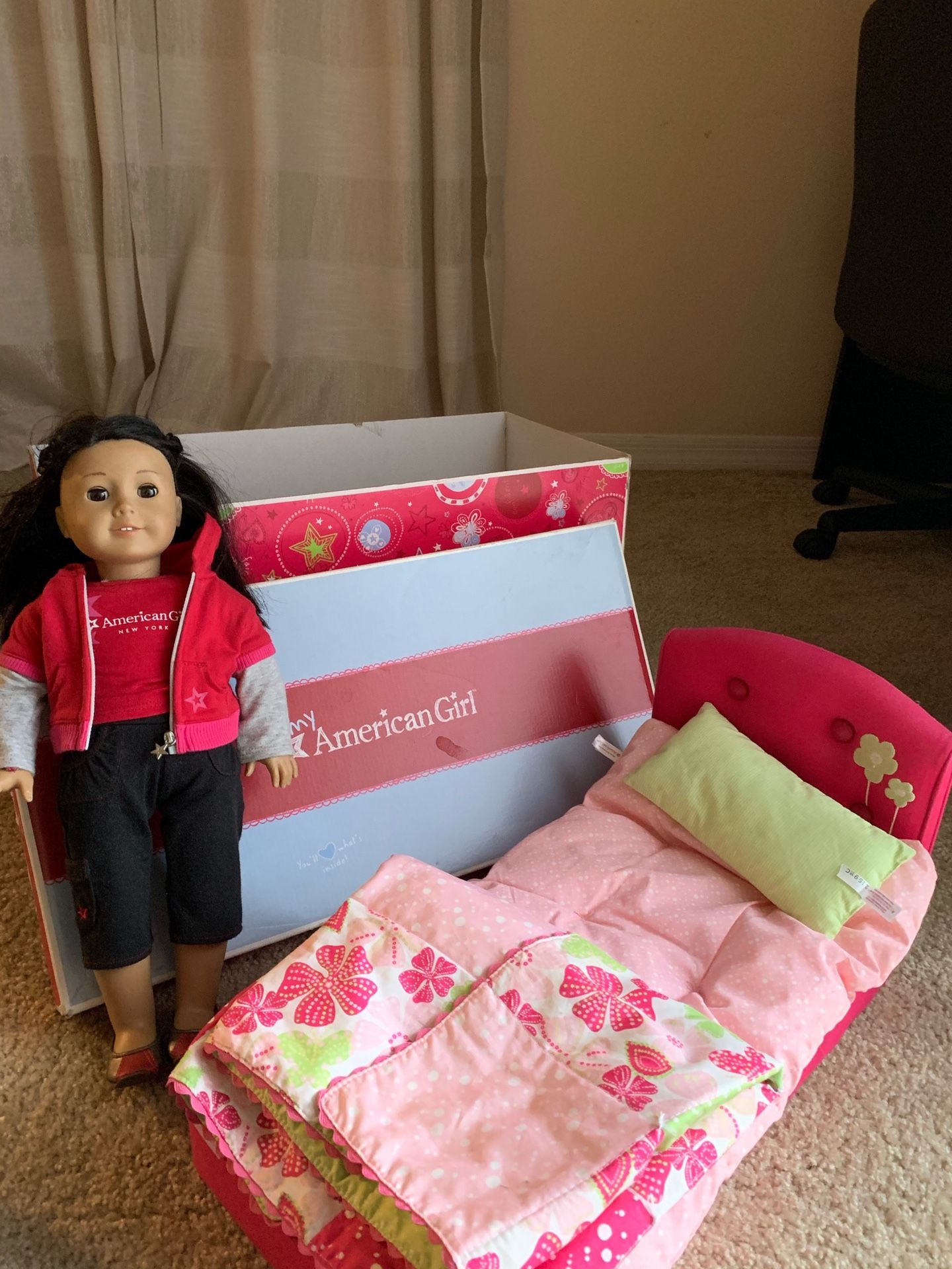DISCONTINUED!!! Exclusive American Girl Doll with Bloom Bed and Bedding . Comes with extra outfit shoes, headband. Like new condition. Well preserved in the box.