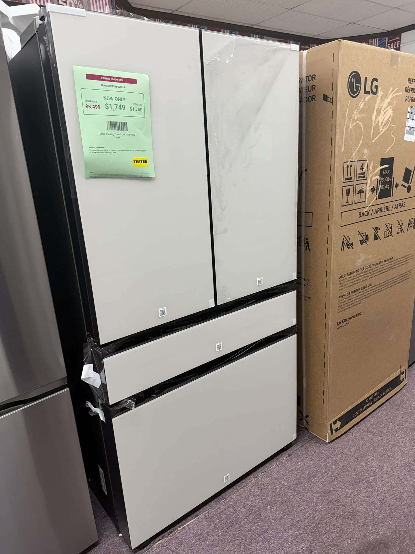 Product Description: Samsung Bespoke 23 cu. ft. Counter Depth 4-Door French Door Smart Refrigerato in White Glass with Beverage Center With 1 year warranty