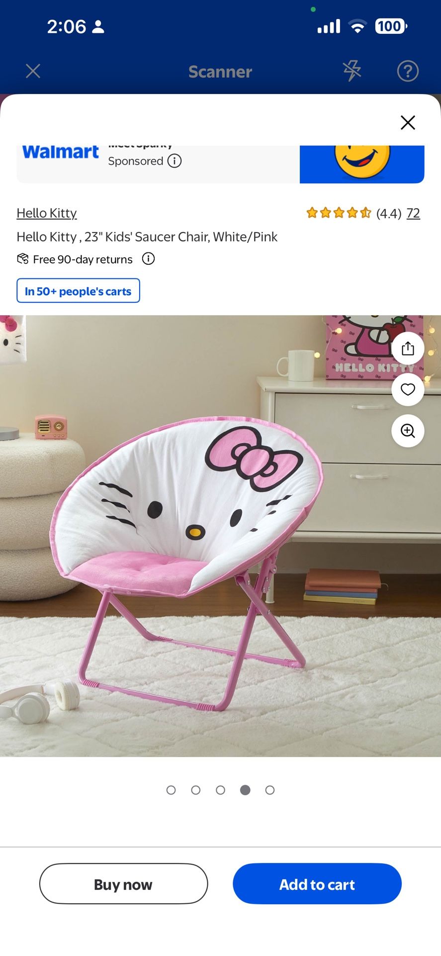 Hello Kitty , 23" Kids' Saucer Chair, White/Pink Brand new W/ Tags