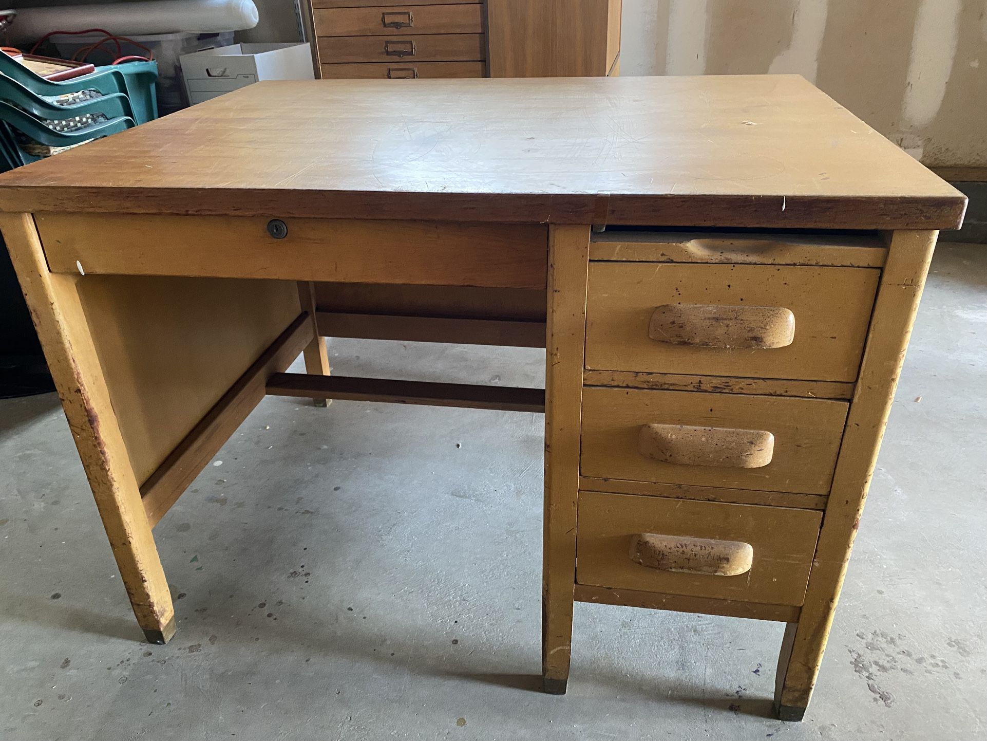 School desk with lock Height 30.5 in Width 42 in Depth 32 in
