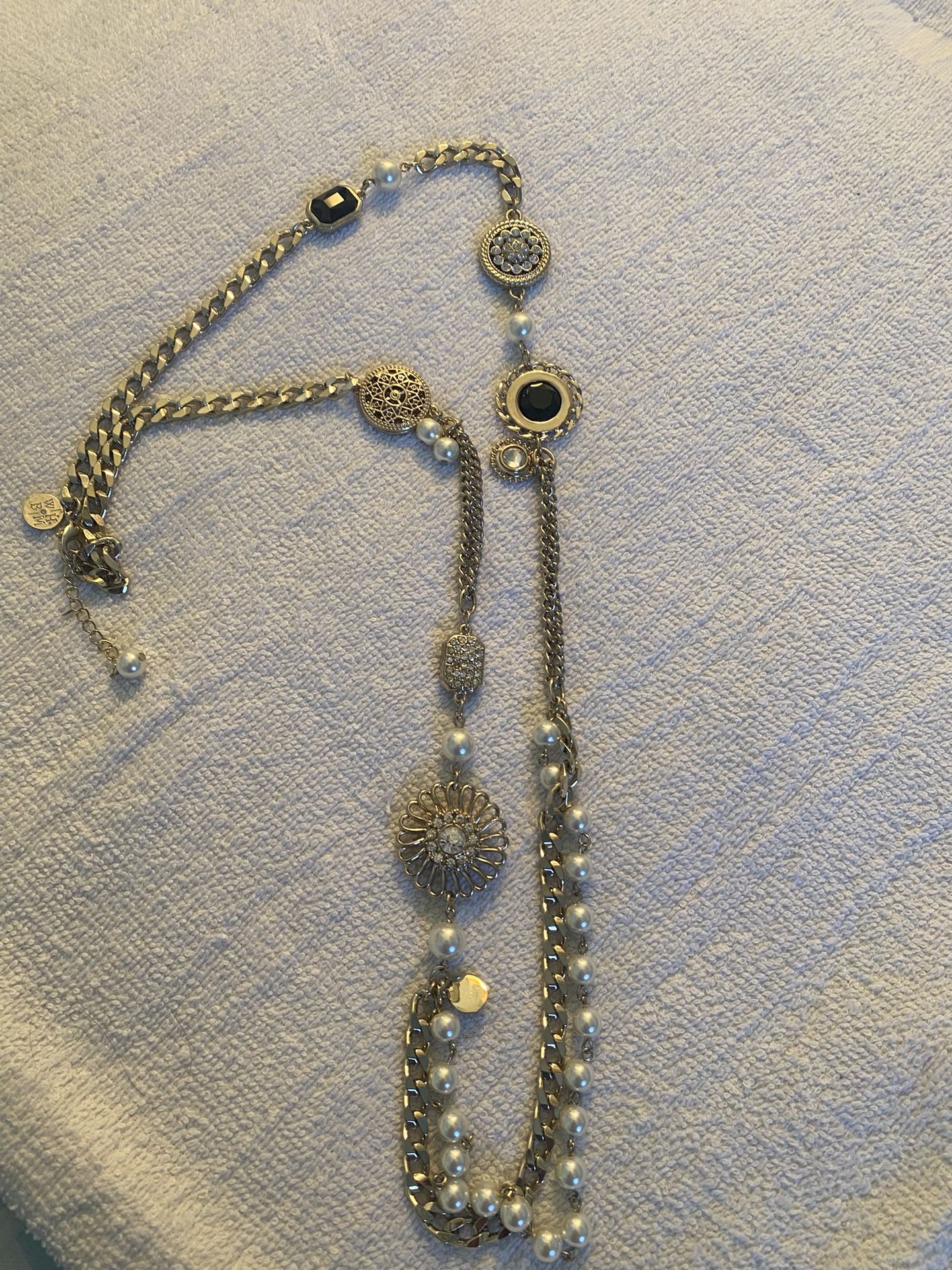 White House black market glass bead 20 inch pearl / rhinestone/ black stone gold chain necklace.