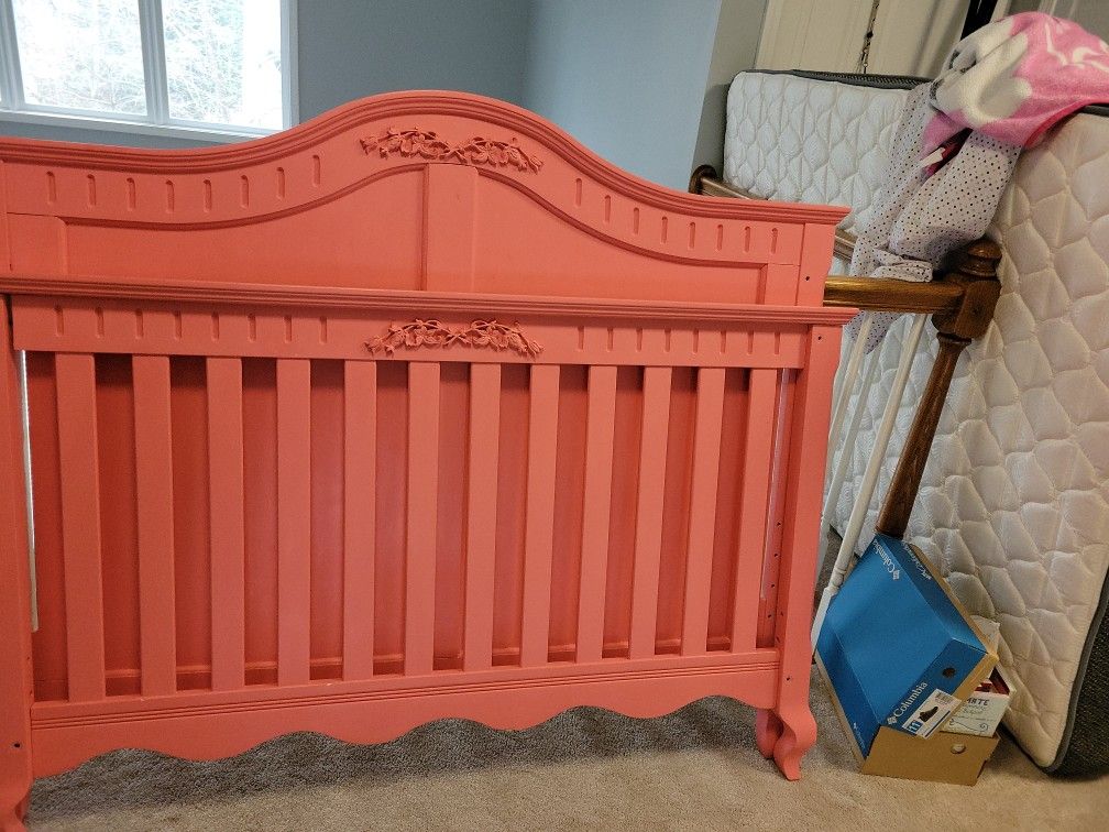 Full size headboard and footboard, pinkish you'll need a bunkie board.