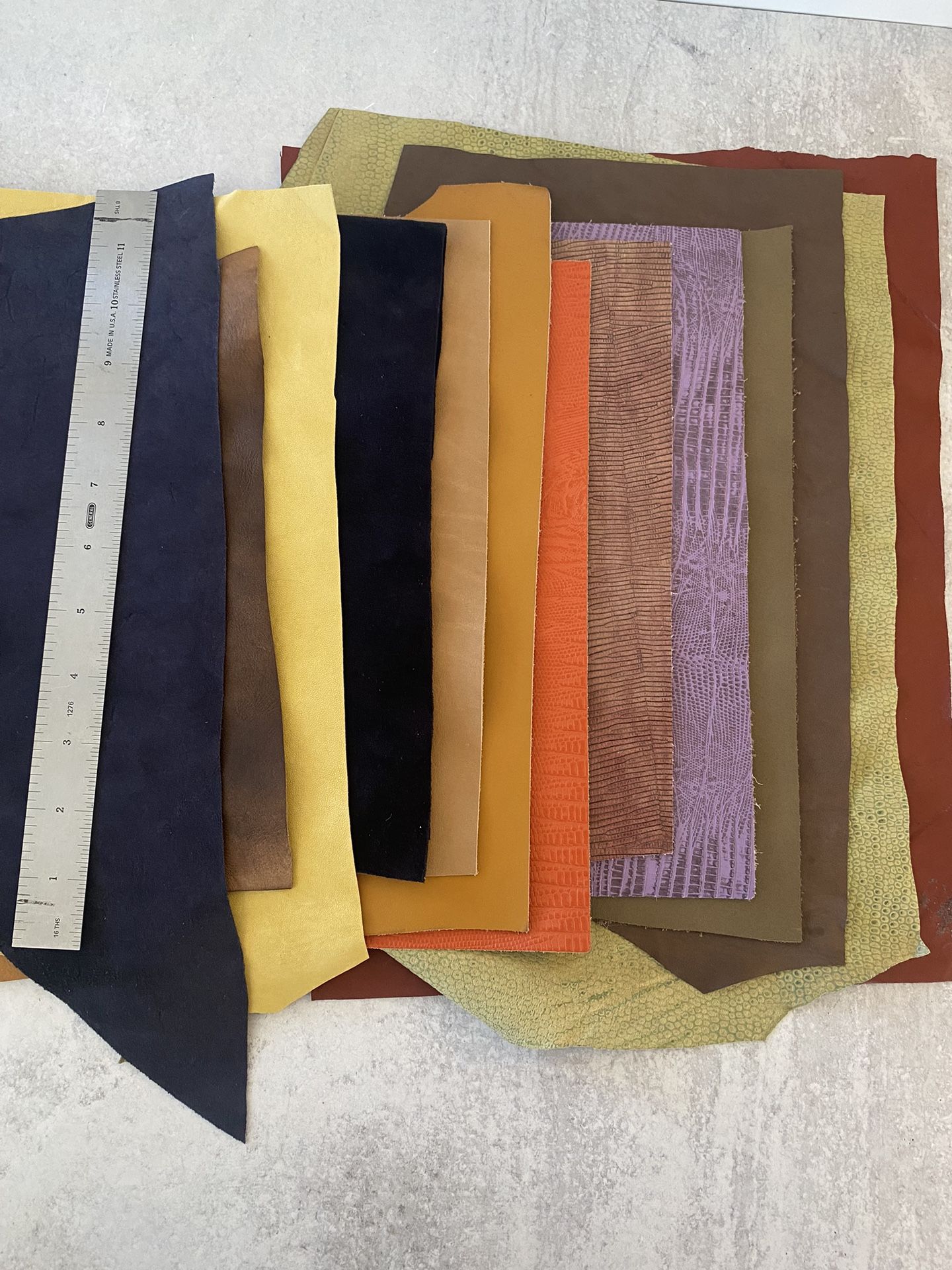 Sheets of leather in assorted sizes. 14 pieces of leather Can be used for leather crafts, small leather goods, jewelry, and accessory making