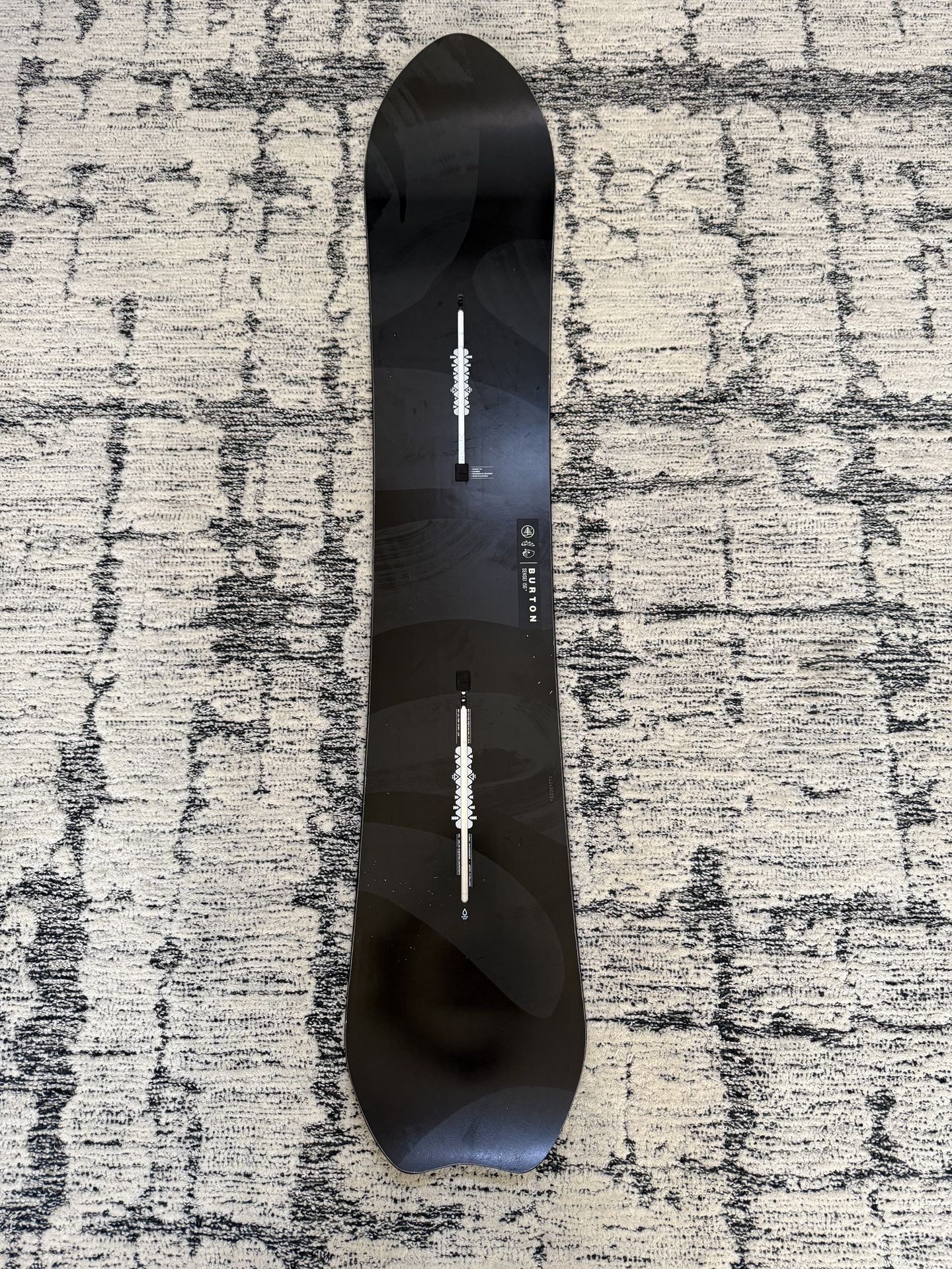 The Burton Family Tree Sensei Camber Snowboard, size 156, is a men's all-mountain snowboard with a directional shape and medium-to-stiff flex, suitable for versatile all-mountain riding. It features a camber rocker profile for enhanced control and response on various terrains. Camber bend advocates powerful turns and precision, offering suspension with weight distributed evenly across the entire board for smooth, continuous edge control from tip to tail. The snowboard was only used for one season and is in excellent condition! It is great for powder and all-mountain conditions.