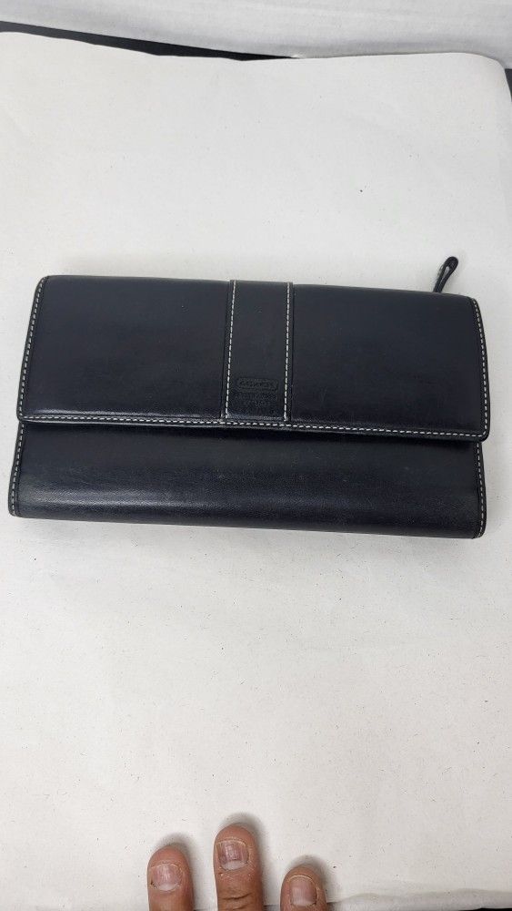 Coach Black Tri-fold With White Stitch Hapmpton