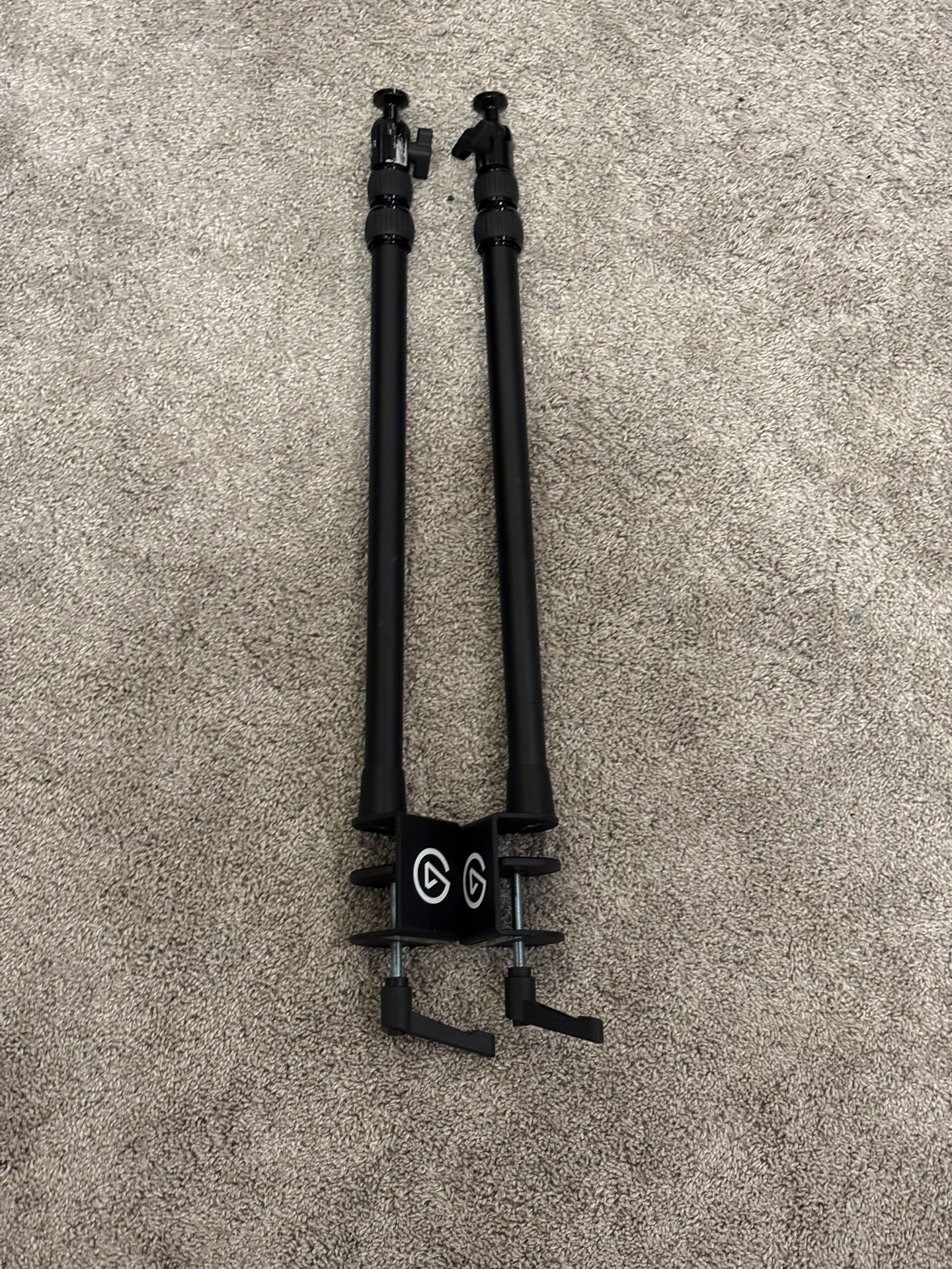 El Gato Master Mount L Mic Rig x 2 Solid desktop rigging for mics or lights. 2 risers up to 49”. 1/4 20 ball head at the end with articulation. Solid steel. I have 2 but will let one go at a time. In good shape. $40 for 1 $75 for 2 OBO