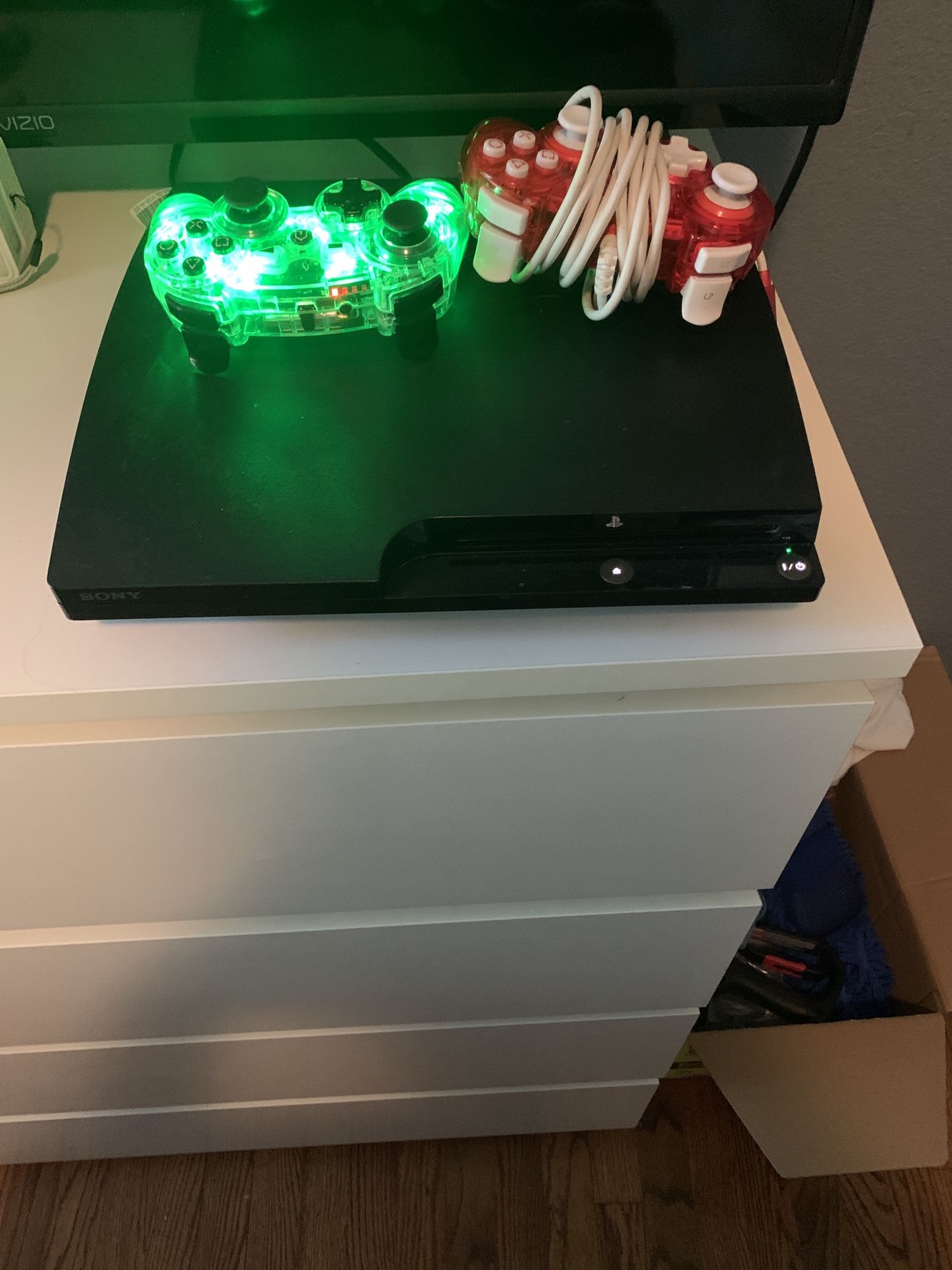 Selling my PS3 because it’s becoming to much of a distraction for me. It’s in great condition Comes with a wireless controller and a wired controller The wired controller works but a part of it is a little broken like shown in the picture. Comes with all the assassin creeds, mortal combat, Dynasty worriors, borderlands 2, and call of duty black ops. NEED GONE ASAP!!!