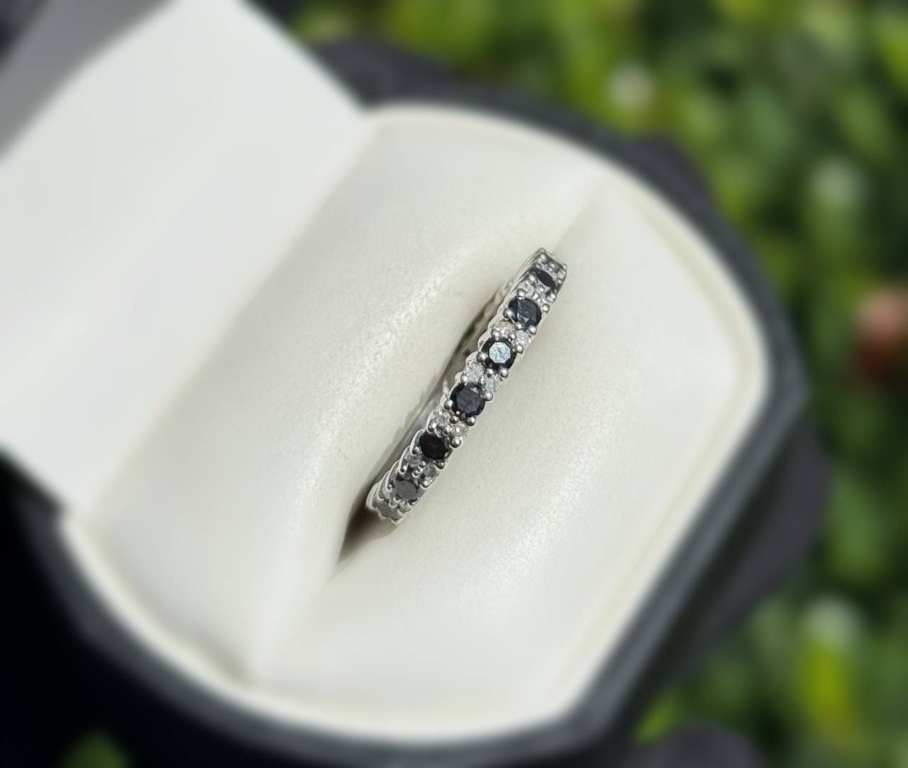 Jewelry 10k solid white gold black diamonds and white natural diamonds ring 1.20CTW size 7.50
