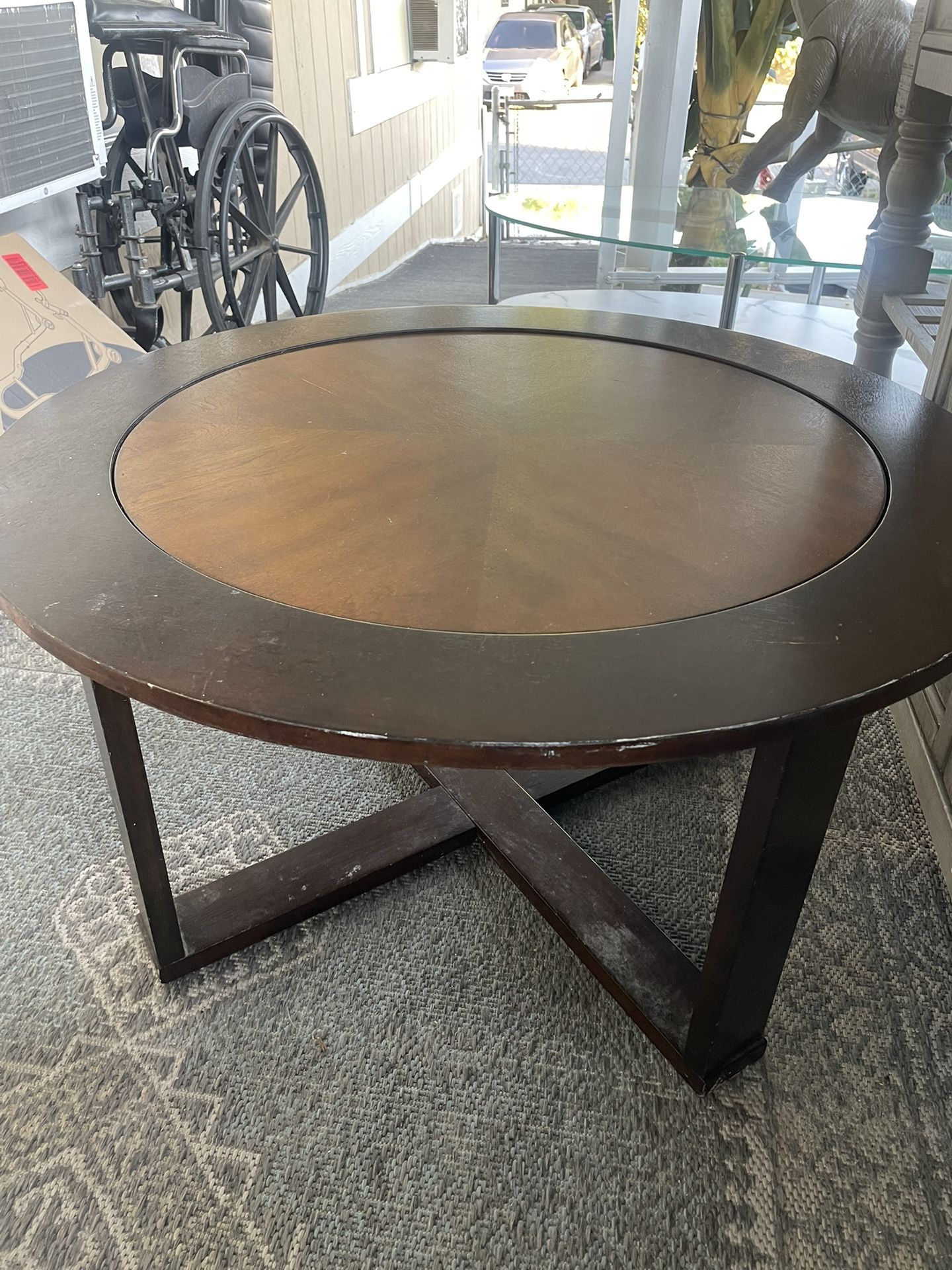 wooden coffee table with a rotatable center top super nice make me a offer will deliver for a price