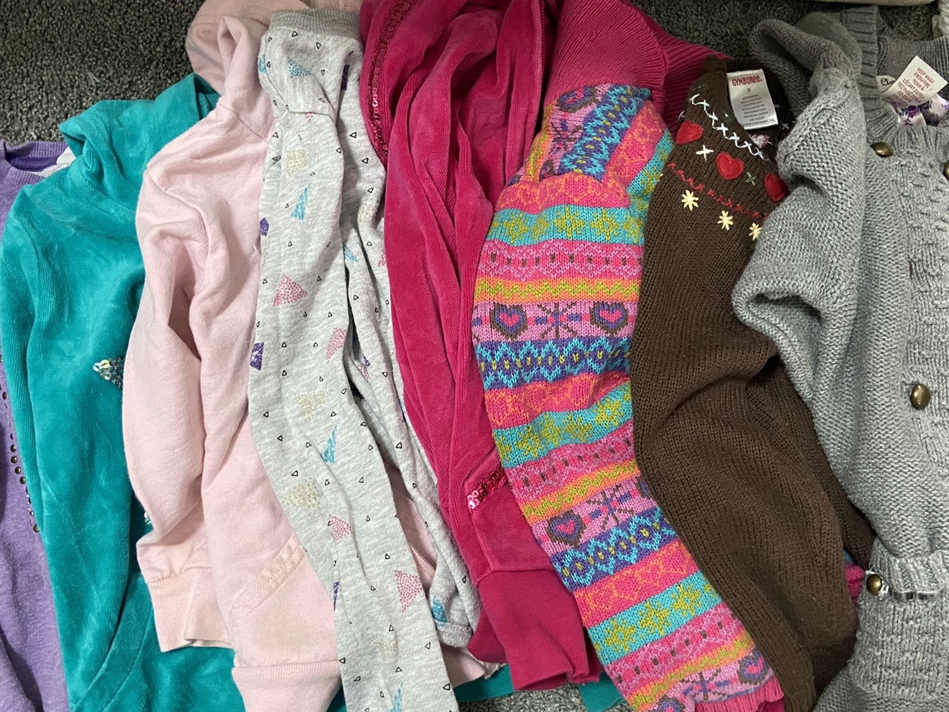 Various knit sweaters for sizes 5-6. Total of 8 sweaters. Some are zip up. Would like to sell whole bag for $20.