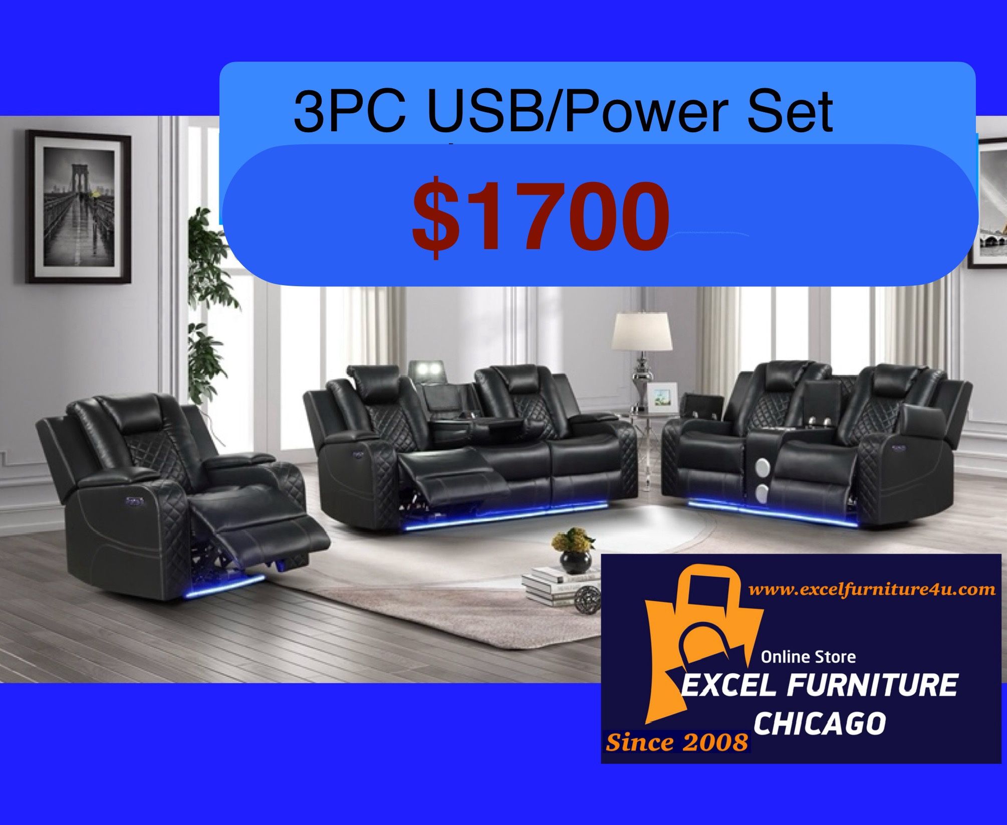 💥FREE DELIVERY💥Brand New POWER, LED, USB 3PC Reclining Sofa Loveseat Chair Set