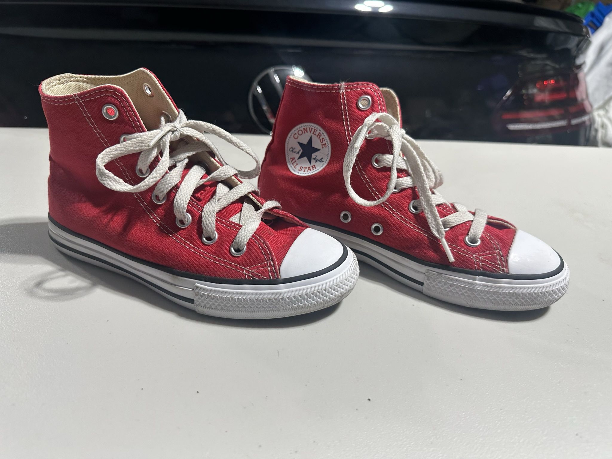 Kids Converse Chuck Taylors red and white. Size 1. Excellent condition. Only used twice. $18 comes with the original box
