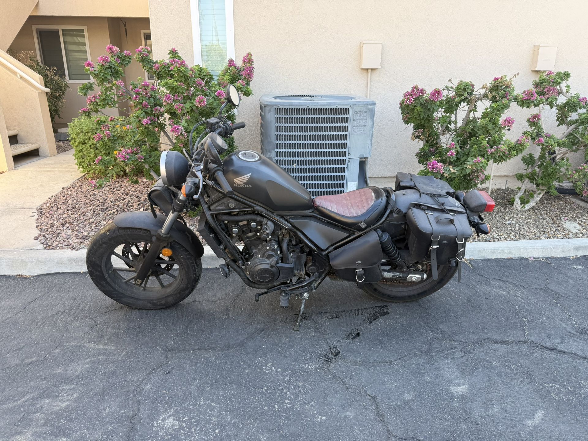 Pre owned Honda rebel 500 with ABS, it spent most of its time in storage I’ve only been able to ride it a few months at a time due to heat, still in working condition, new battery, new turn signal switch and wiring, new side paneling to cover electronics. Great beginner bike, I used it to learn to ride, and learn motorcycle maintenance. Comes with a $450 saddle bag set.