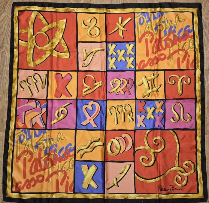 PALOMA PICASSO PARFUMS Zodiac Logo Designer Scarf 35” Squared