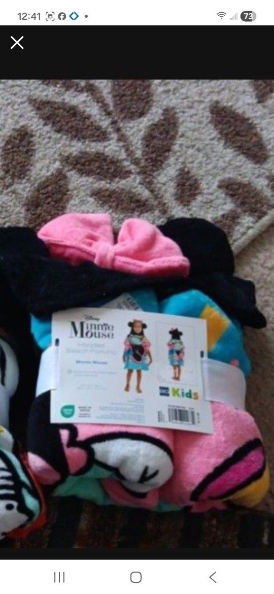 Kids Hooded Towel Poncho. Minnie Mouse. New