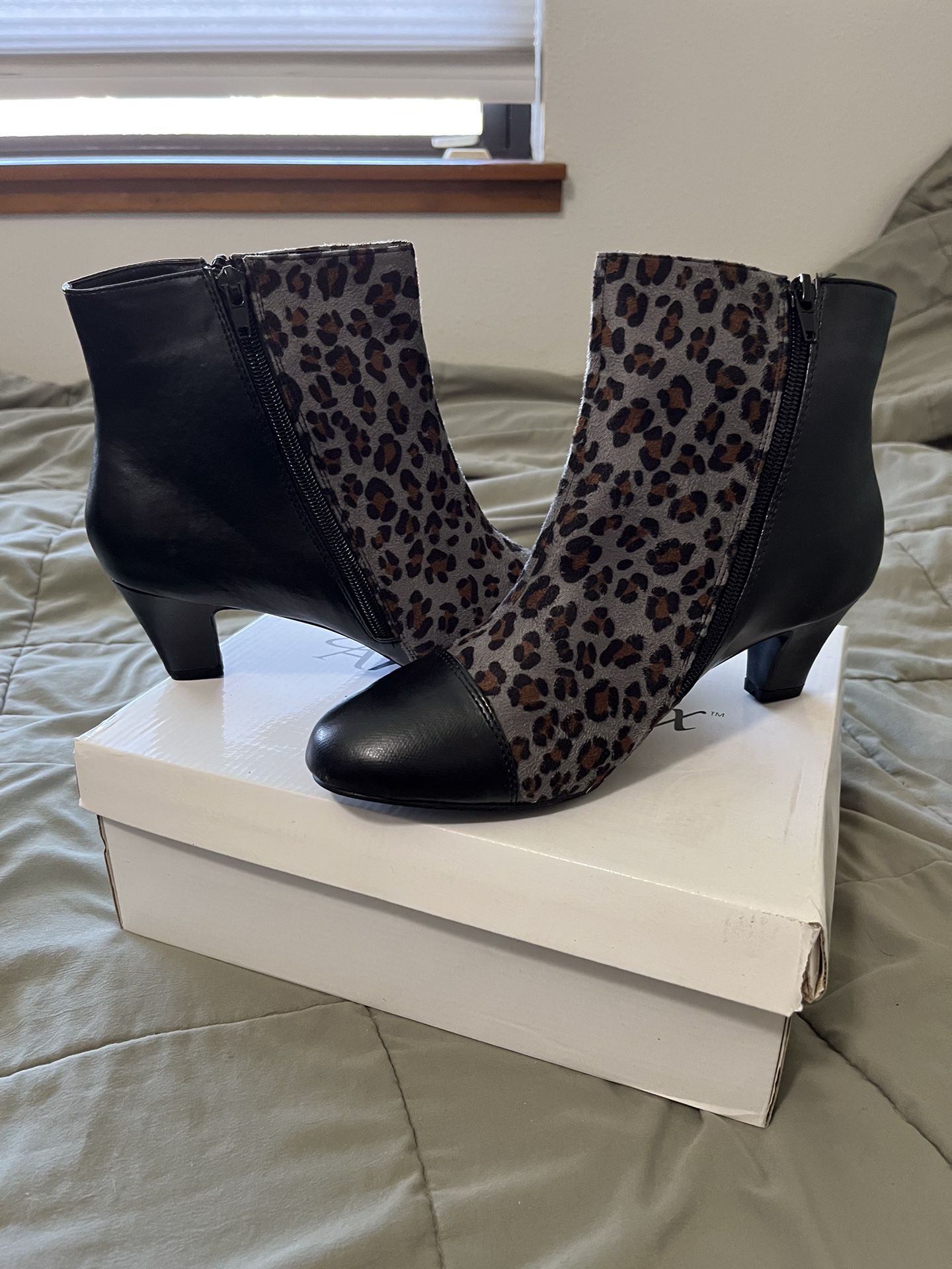 Women’s Size 8.5 WW Leopard/Black Dress Boots