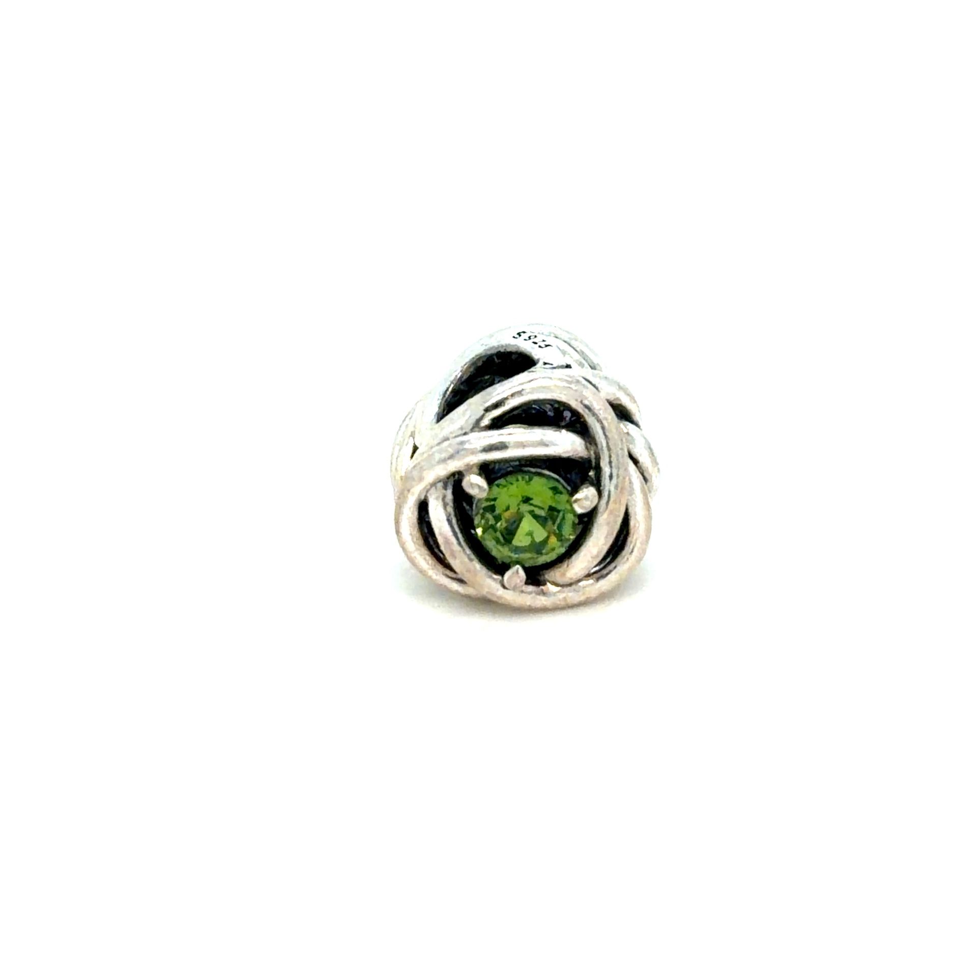 SPECS: Metal: sterling silver 925 Metal stamp: S925 ALE Condition: Preowned Authentic Pandora Peridot Knot Charm. Peridot is the birth stone for August symbolizing prosperity, good fortune and healing. Note: Pictures are enlarged to show fine details of the product