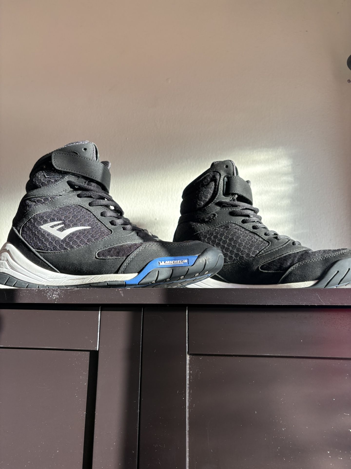 Shoe is meant for boxing, used but still in good quality a little bit of scratched on the back but not very much of these are sold blue color way. Price is negotiable