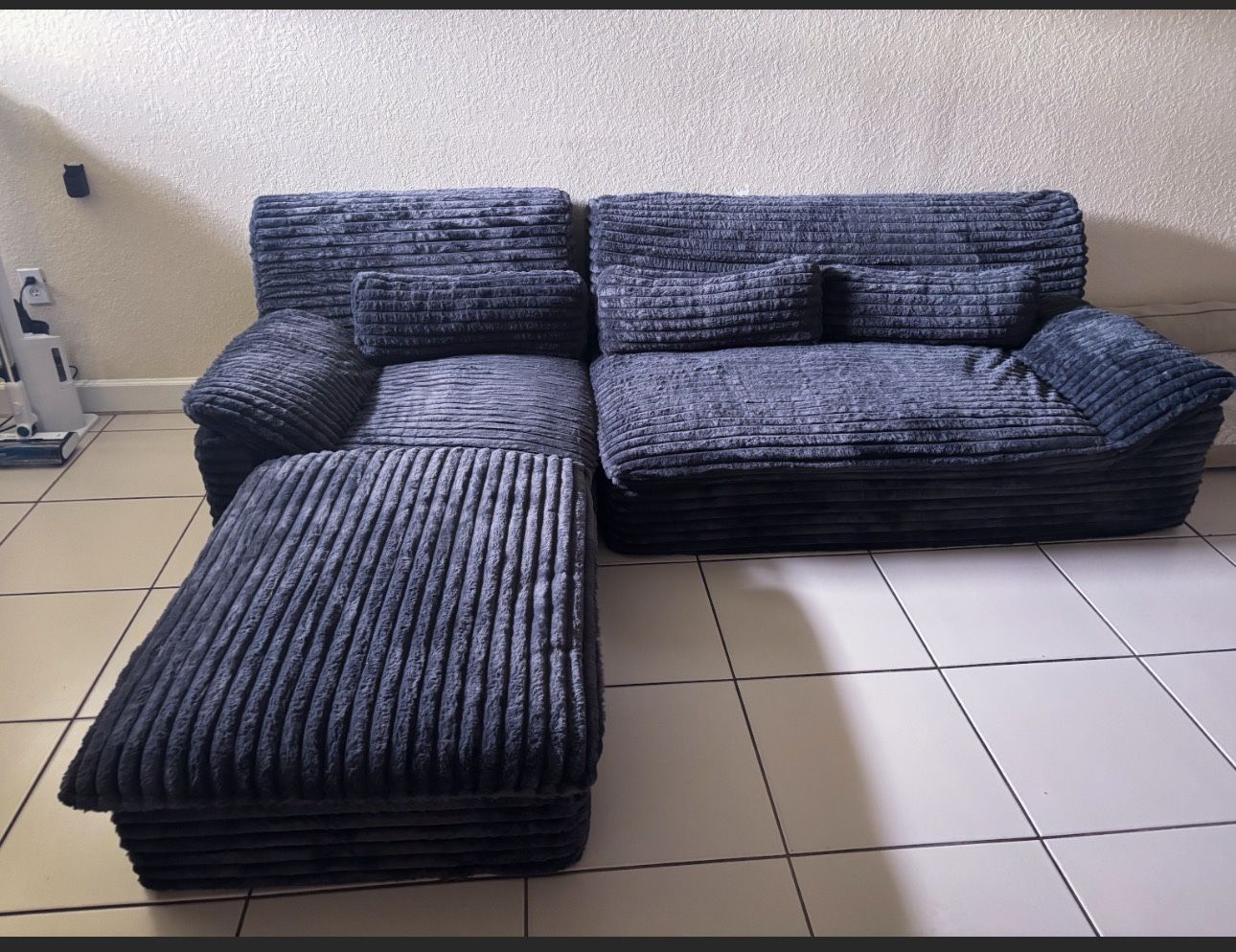 Dark gray brand new L-shaped with chase bought in Wayfair but don’t look right in my living room they were just bought not even a month ago
