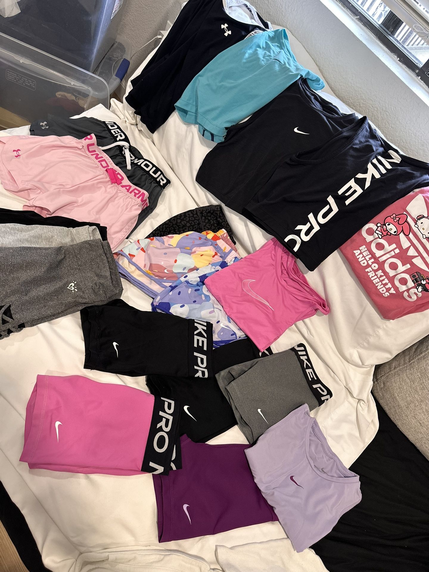 Normal wear, all size medium. Nike pro, adidas, justice, under armour