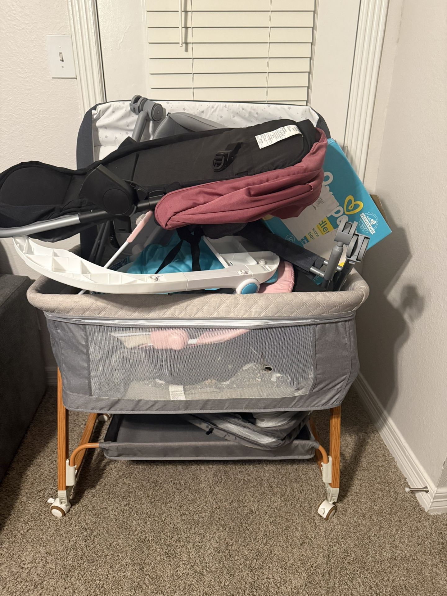 Used baby items. They’re in good condition. Some may need a quick wash, others were used maybe once or twice. Bassinet, bouncer, sit up chair, box of newborn diapers, lounger, portable changing table, diaper bag, activity center, Evenflo stroller and bassinet (car seat portion not included), graco vibrating chair, play mat and Toddler lightweight stroller. All for $150