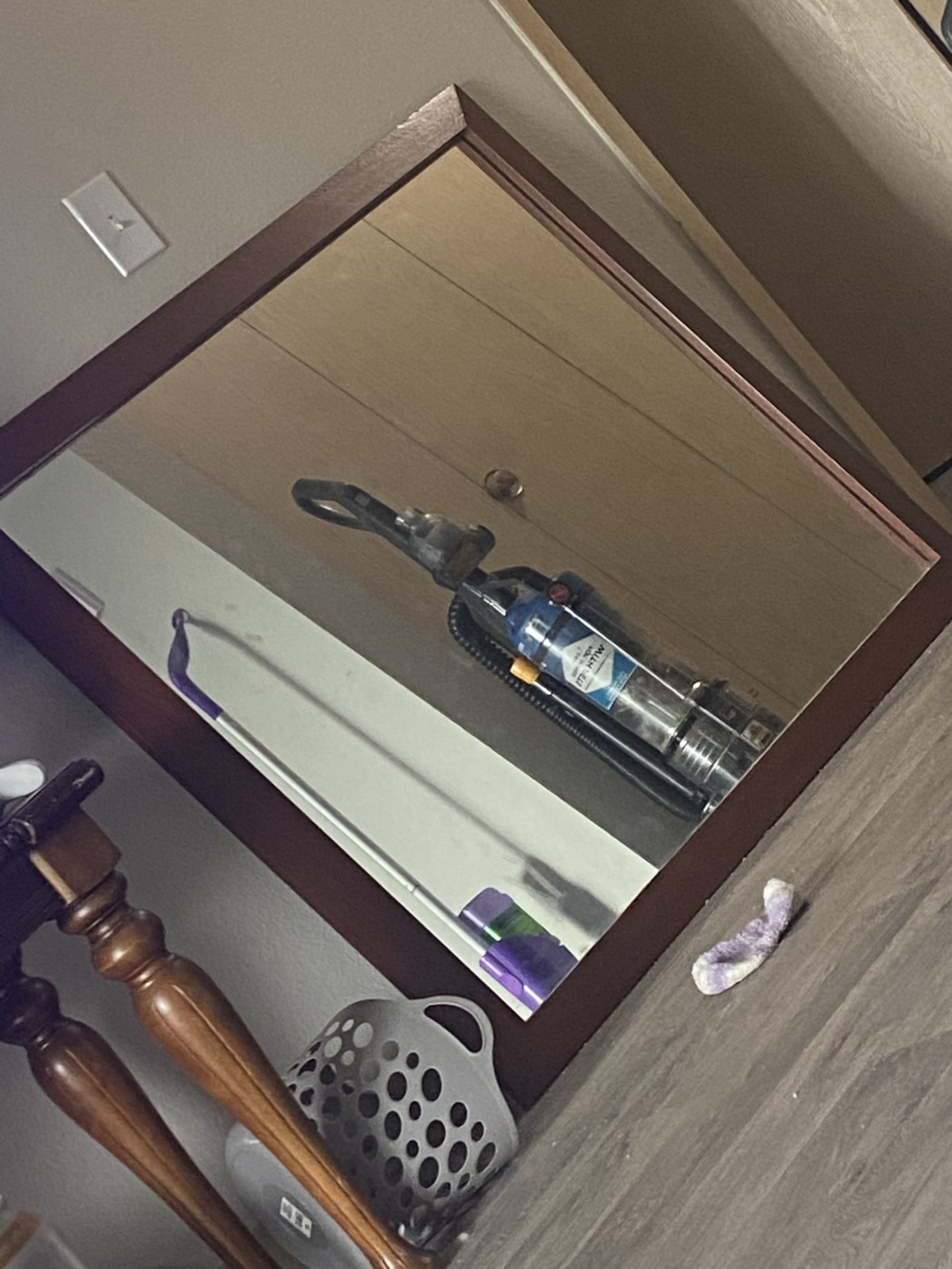 Not sure on size exactly but looks like 2.5x2.5 great mirror it is heavy