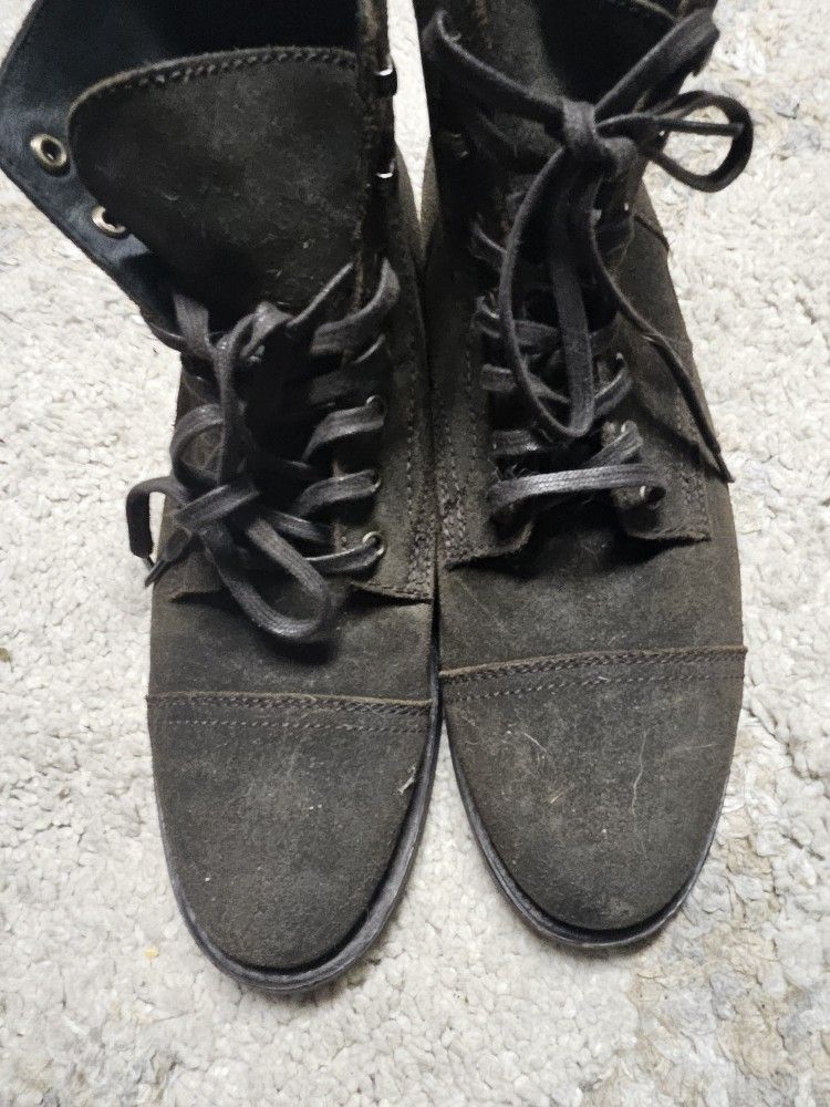 Here are a pair of Thursday brand Captain Boots in dark chocolate brown suede men's Size 9. Only worn a few times (they look like clown shoes on me, lol. I'm 5'5" and female.) In great condition, barely worn.