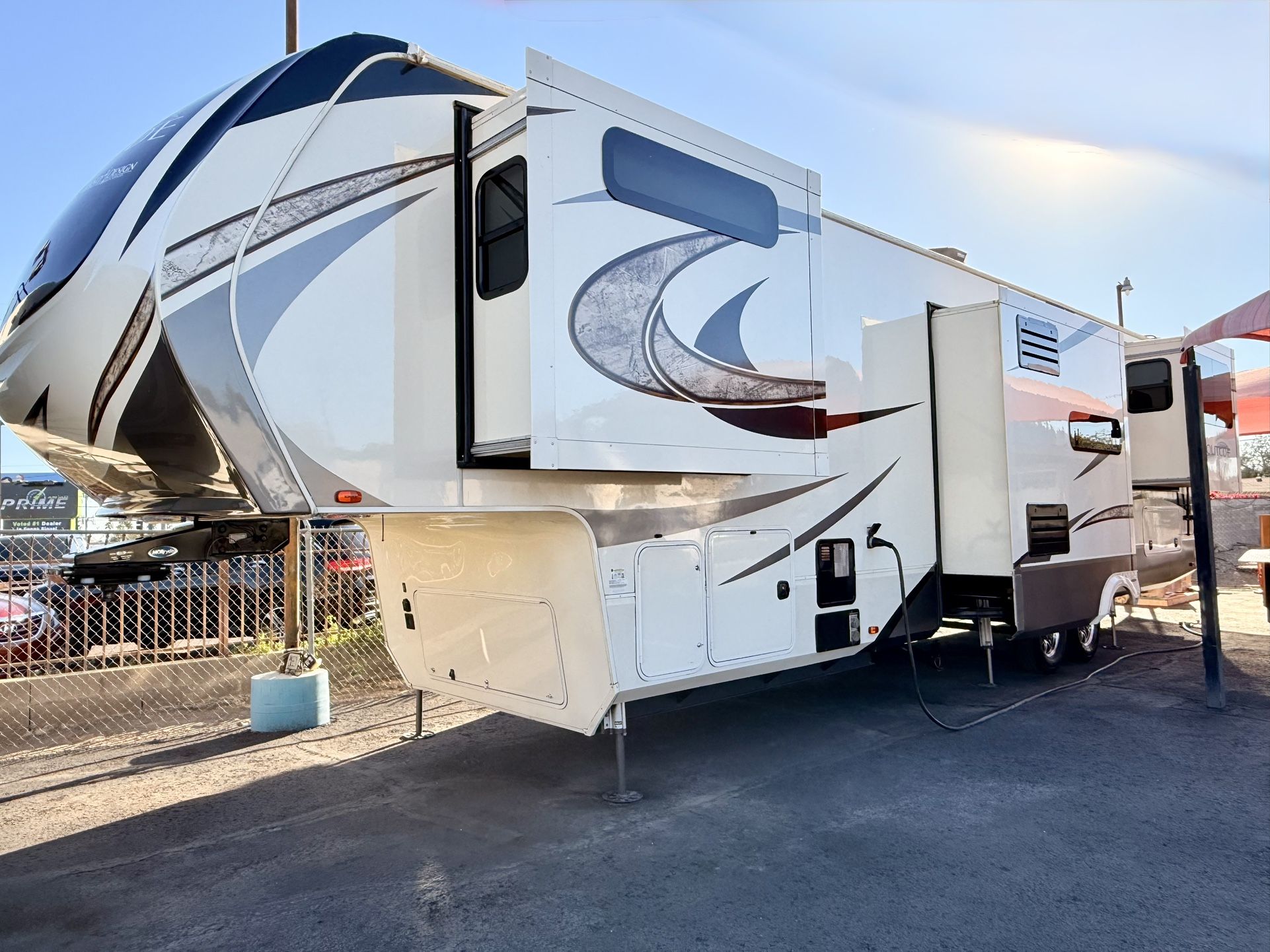Selling a beautiful 2018 grand design solitude model 375RES fifth wheel length is 41 feet has 5 large slideouts large basement storage with slide out trays fully self-contained, full body paint four seasons, package full hydraulic leveling system also has a receiver hitch tow package good tires, large electric awning 2 central ducted 15,000 BTU ACs and heating full island kitchen has all stainless steel appliances, four-door refrigerator freezer with icemaker that runs off of gas or electric microwave convection oven also full-size regular oven washer and dryer hook ups large TV entertainment center with fireplace surround sound stereo system all LED lighting, lots of beautiful cabinetry can sleeps up to 6 people large queen size walk around bedroom huge amount of closet. Space. Large bathroom and shower this luxury fifth wheel has it all in excellent condition in and out, everything works great clear title ready to go asking $34,500 obo