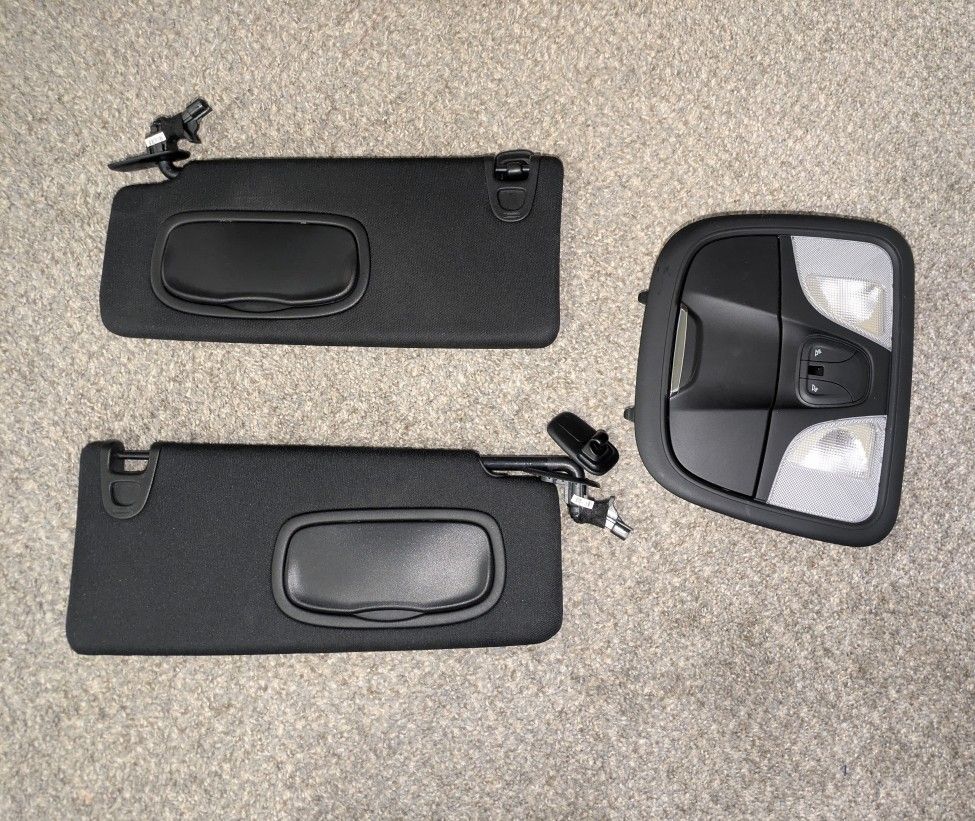 I was going to change my interior from the tan to black but I ended up having to let go of the car and I don't need these anymore. I'm asking 40 for the visors and 30 for the over head console. If you by all of it I will 50 for everything.