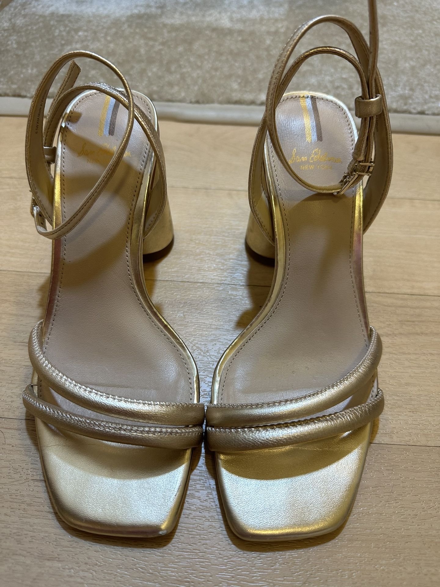 Brand: Sam Edelman Style: Kia Block Heel Sandal Color: Gold Size: 6.5W Original Purchase Price: $139.95 Purchased: August 2022 Number of times worn: 2