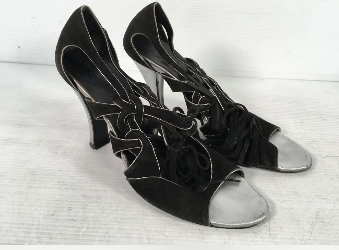 Chanel Black Suede Lace Up Tassel Heels Size 38.5.