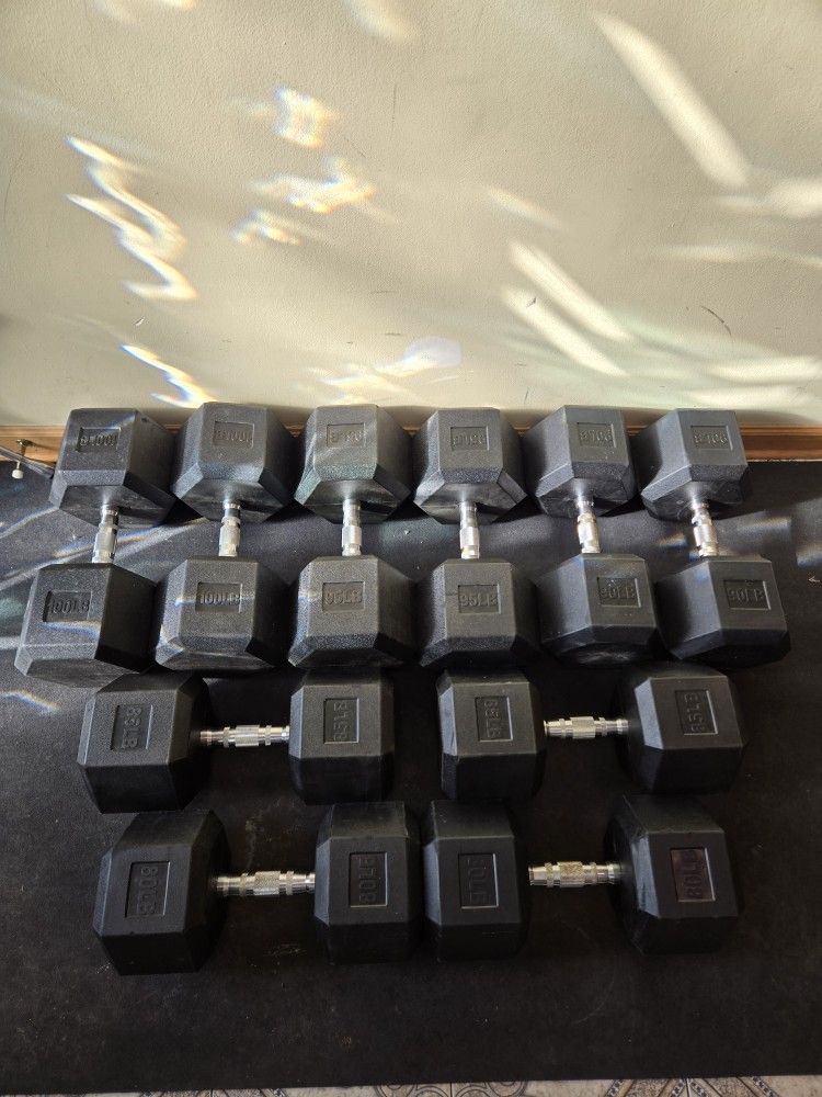 80lb, 85lb, 90lb, 95lb, 100lb Rubber Hex Dumbbells--