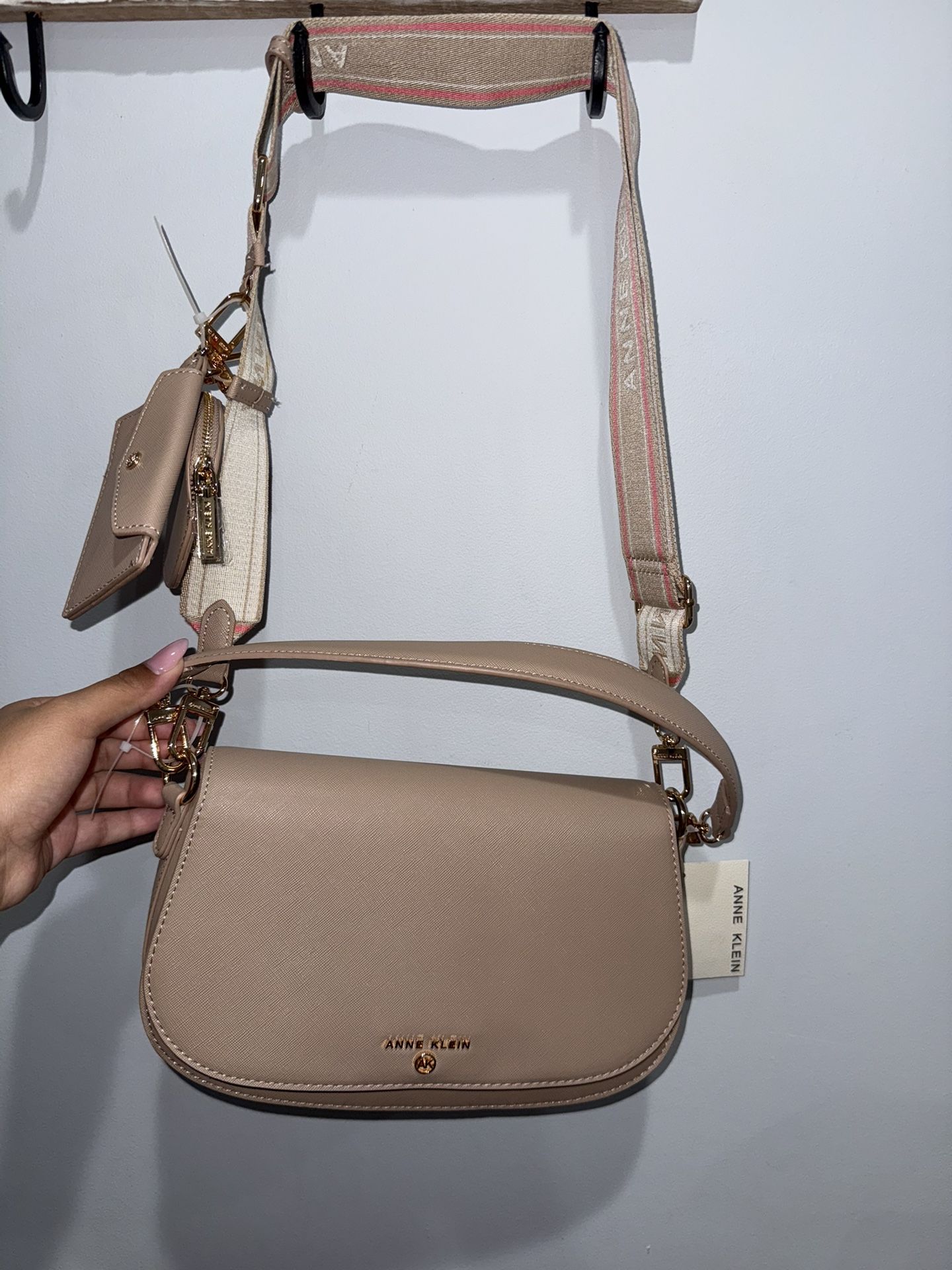 Anne Klein Crossbody Purse Adjustable Sizing New with tag Neutral color with pink accent on strap