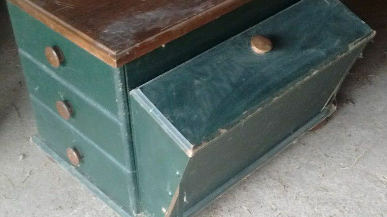 The front has a door and not drawers and on the side opening is for magazines & books, ect...first come, At: 7600 Strath road in henrico 23231