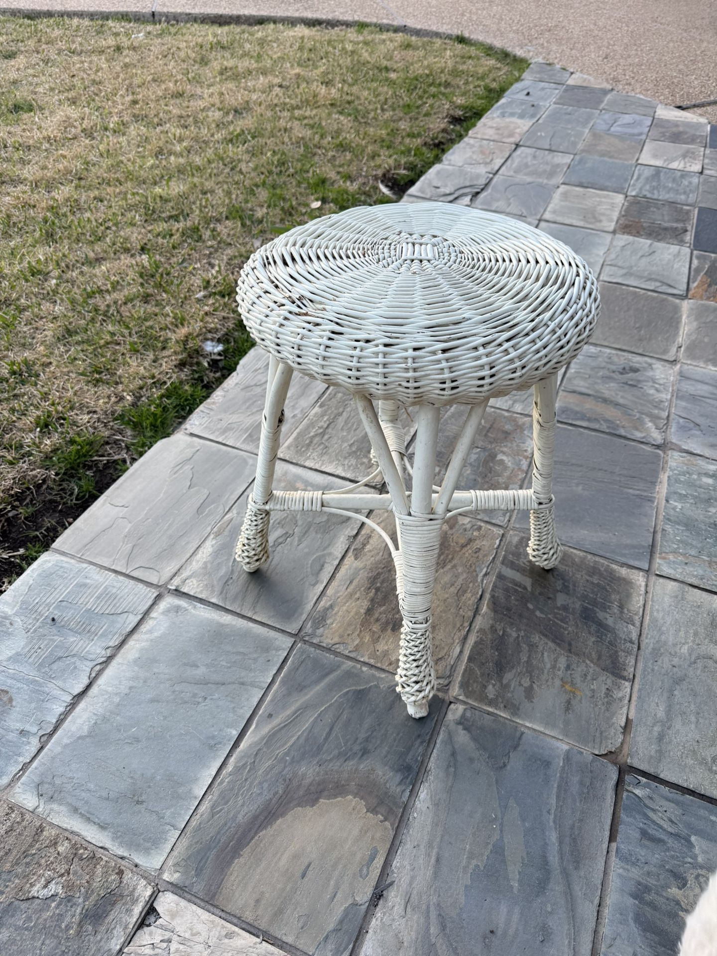 Cute White Wicker Stool * Plant Stand * Patio Decor