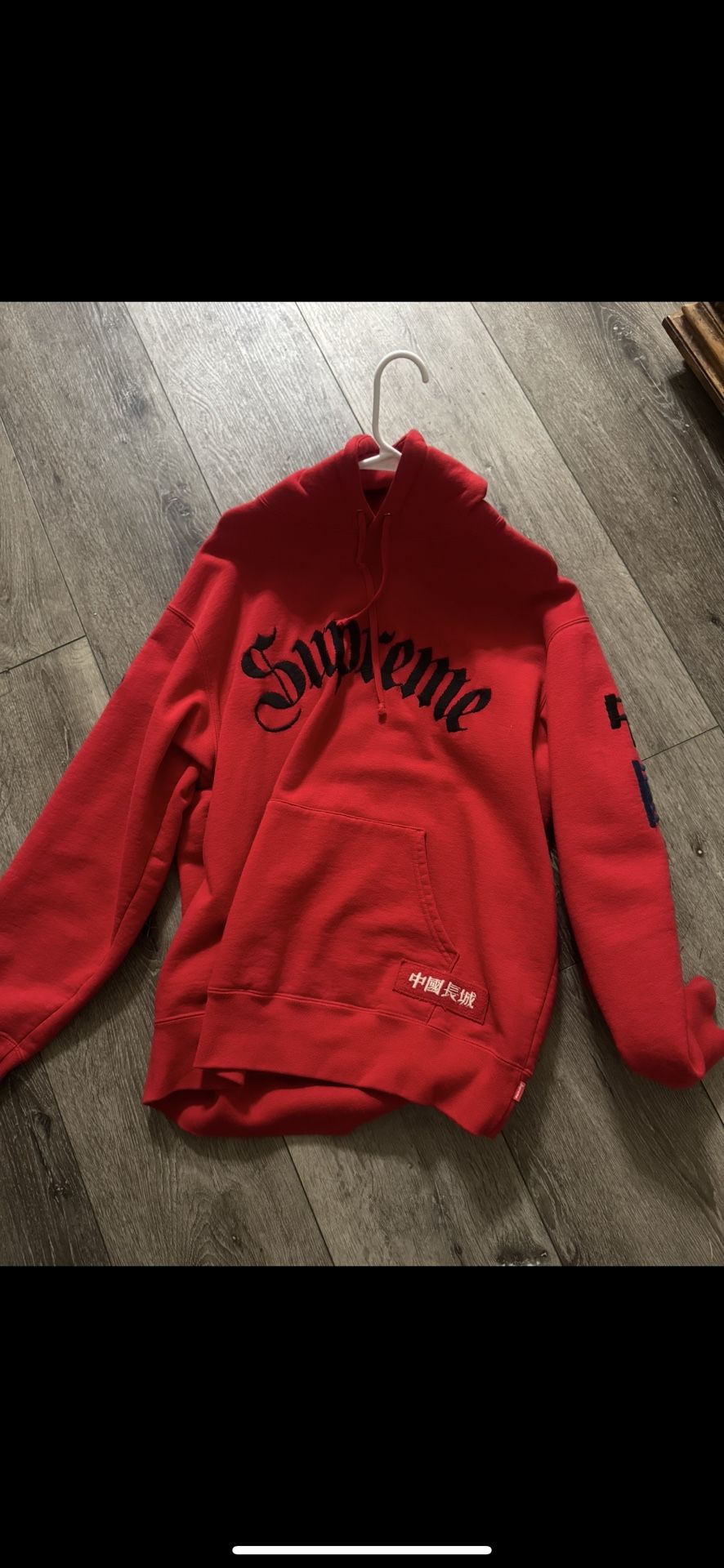 Supreme hoodie in good condition just has super tiny hole from getting caught on something. Hole is unnoticeable