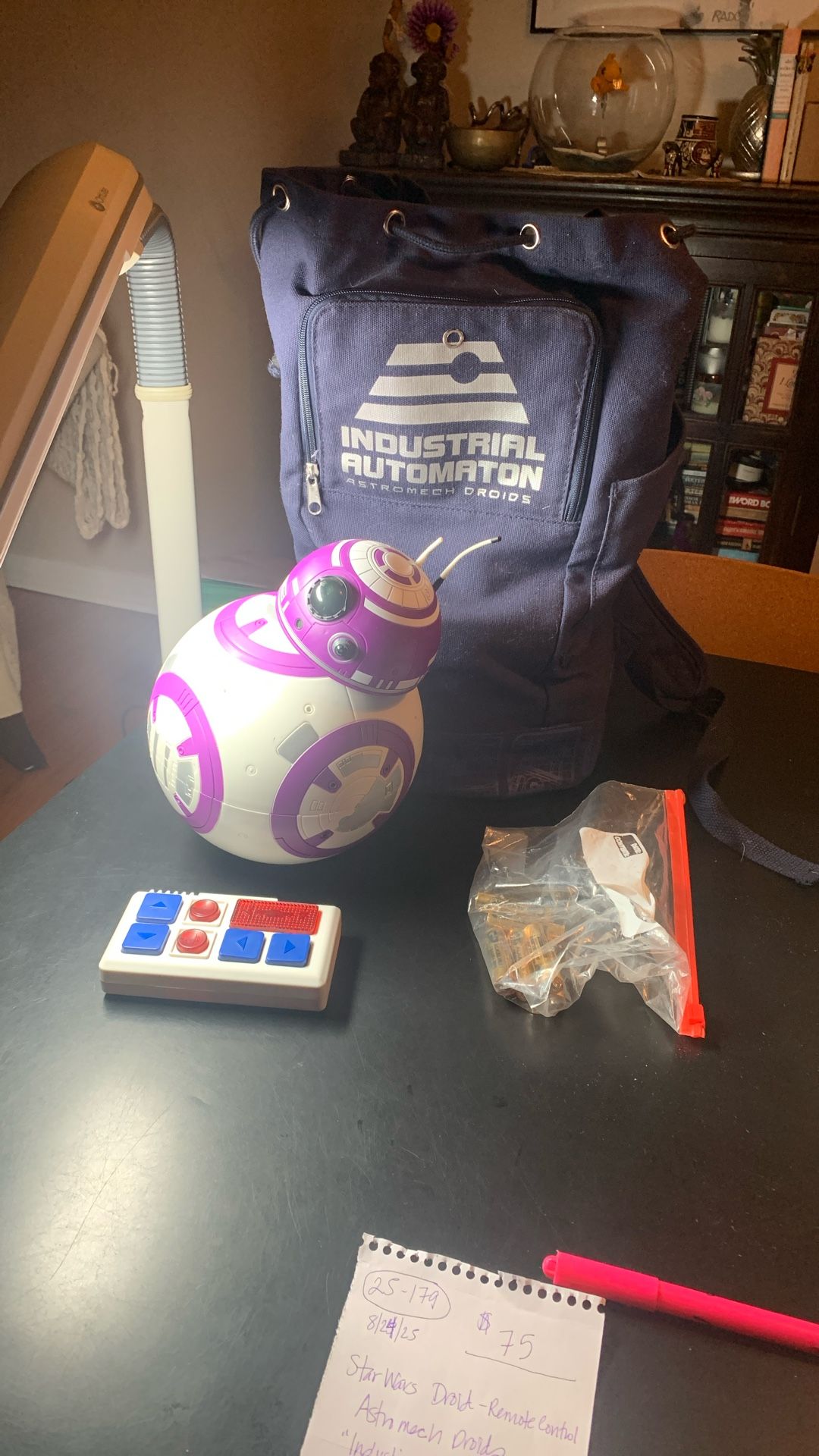 Astrometric Droid- Industrial Automation BB series-remote control Uses batteries in controller and in droid Stores safely in backpack with outside pocket for instructions and inside pocket for controller Works