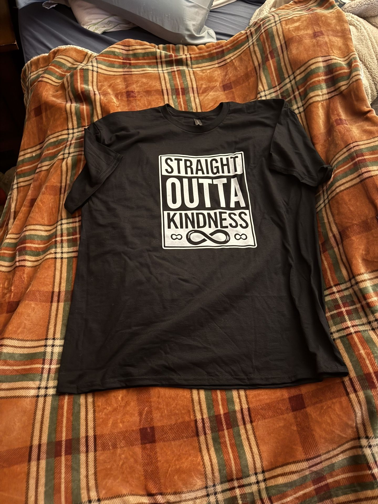 My Straight Outta Kindness T Shirt I have L & XL left. New $14 your purchase helps to supply the homeless children of the lighthouse youth center Cincinnati Ohio