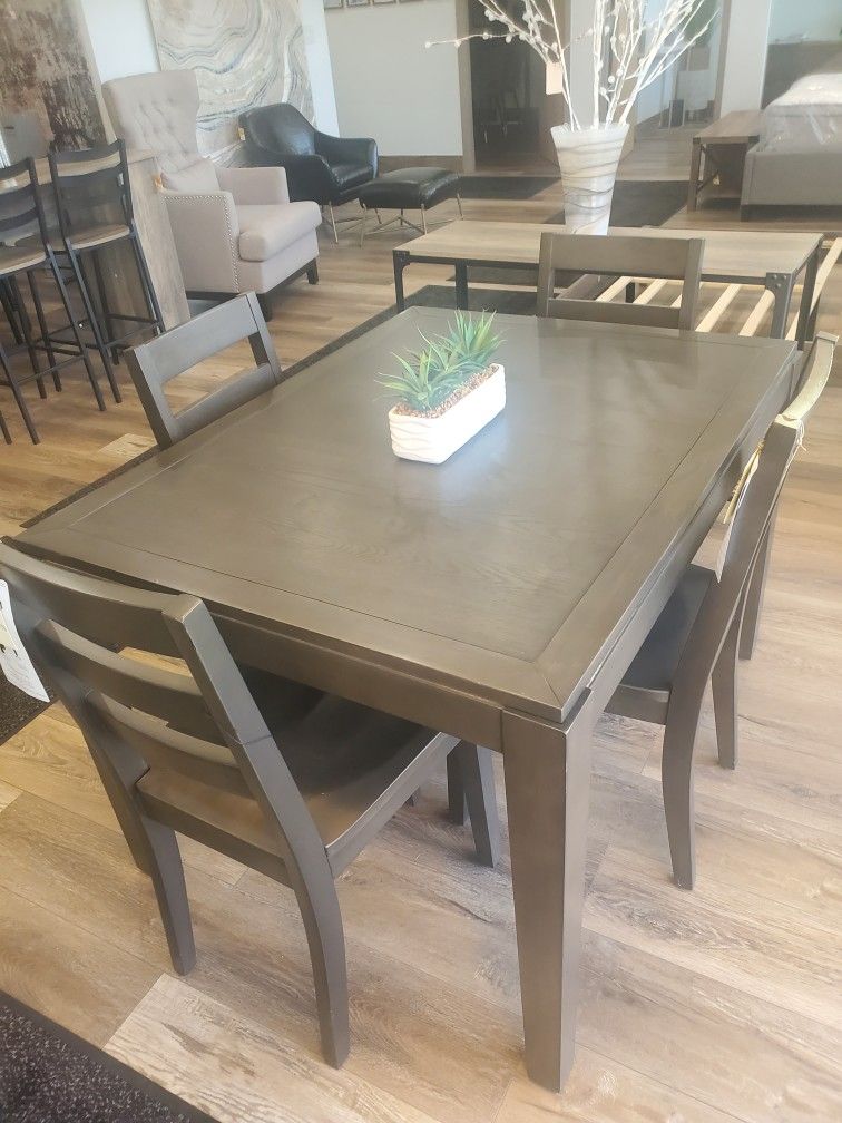 5 PC Solid Wood Greyish Brown Dining Set with 4 Chairs (Brand New In A Box)